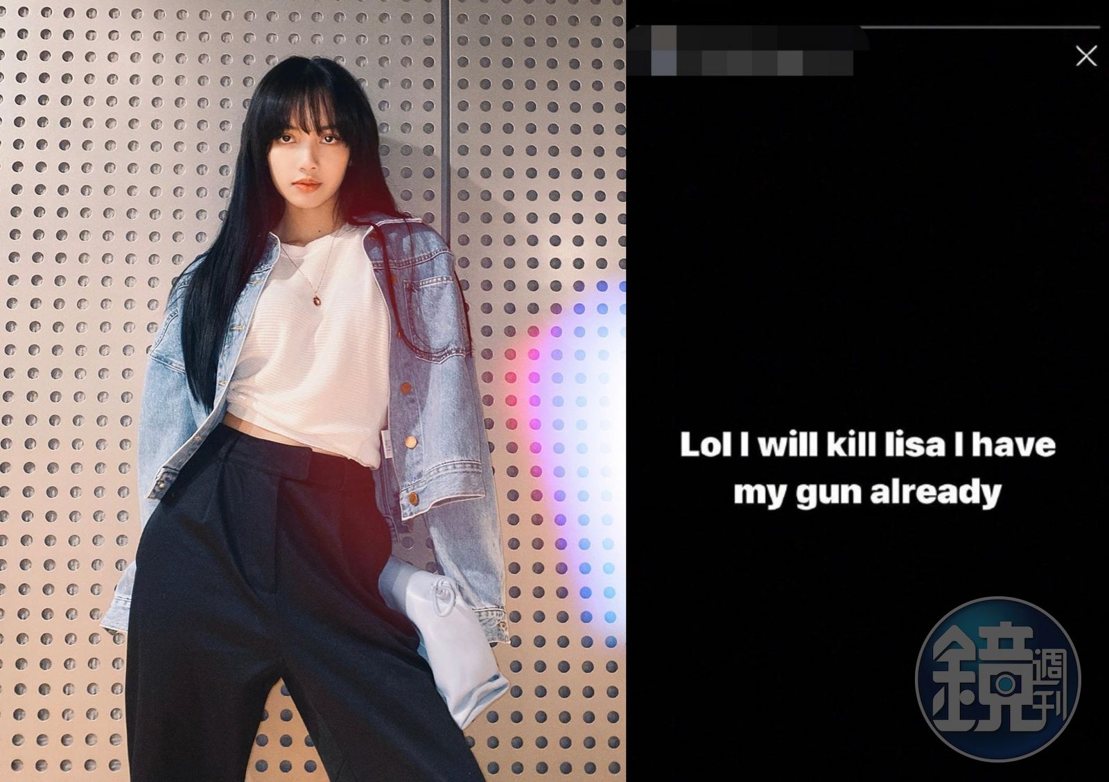 網友發現Instagram上有位將IU和LISA的名字做為使用者帳號,並加入不雅文字,他在限時動態打上:「Lol I will kill lisa. I have my gun already.」(我將殺了LISA。我已經準備好槍了。)