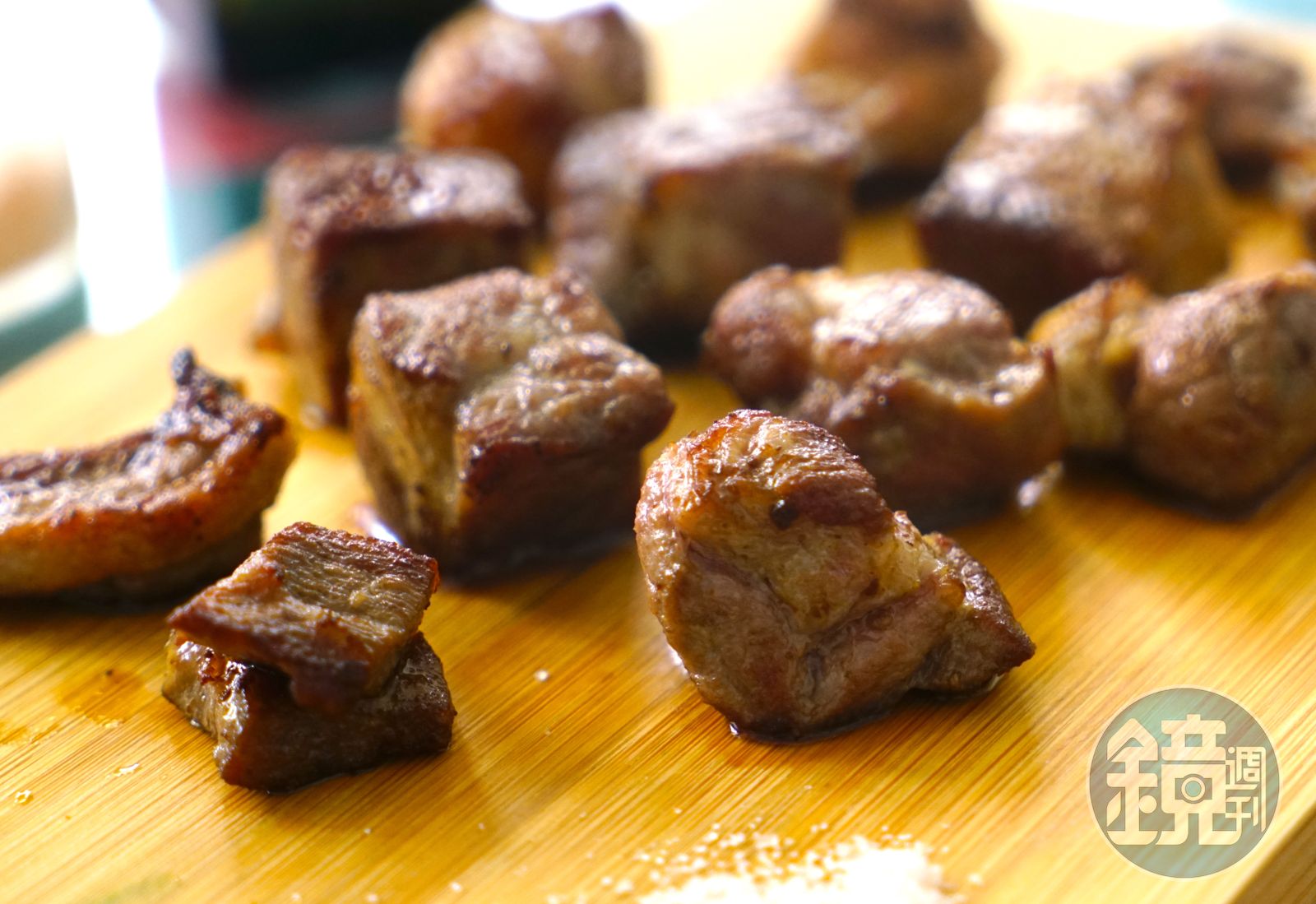 - 若是第一次煎牛排,建議挑選油花豐富的肉排或是骰子狀肉塊,較不容易煎到過老或柴掉。