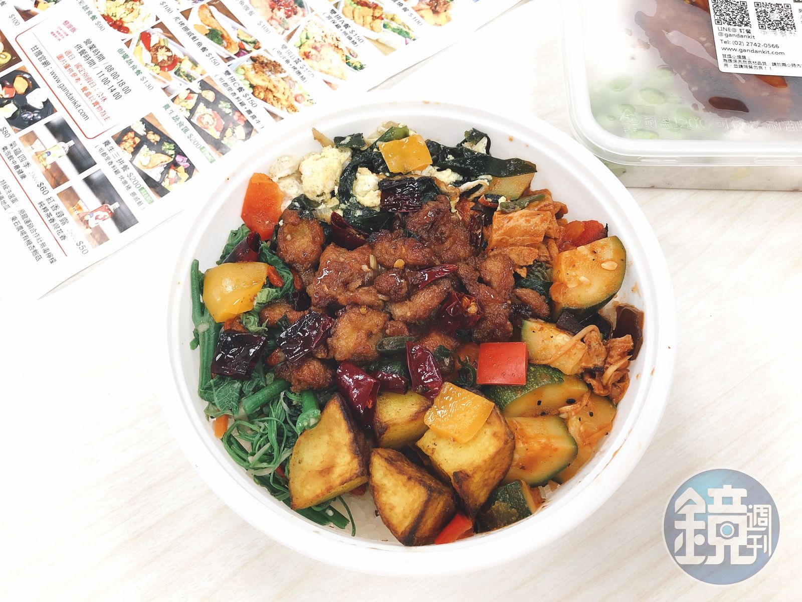 我們試吃了其中幾款,記者們公認性價比最高的一款是宮保雞丁,雞丁炒得夠味,十足下飯,加上其他5種配菜,幾乎鋪滿整個餐盒,每一口藜麥飯都能配到滿滿的菜,口味紮實之外,飽足感超級高。