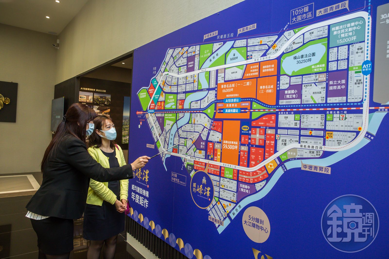 主打3分鐘到高鐵桃園站的建案〈日勝新京站〉,推出中小坪數房型,為機捷A18站區目前最高價的指標建案,專案經理郭旻維指出,青埔的建商可說是百家爭鳴、量體也大,但近期不少案子都能在1年多內完銷,「新京站才開案1個月左右,已銷售出7成。」另一建案〈威均峰澤〉專案副理吳樹清則表示,雖受疫情影響看屋客有減少1/3,但在100組來客中,成交有近4成。