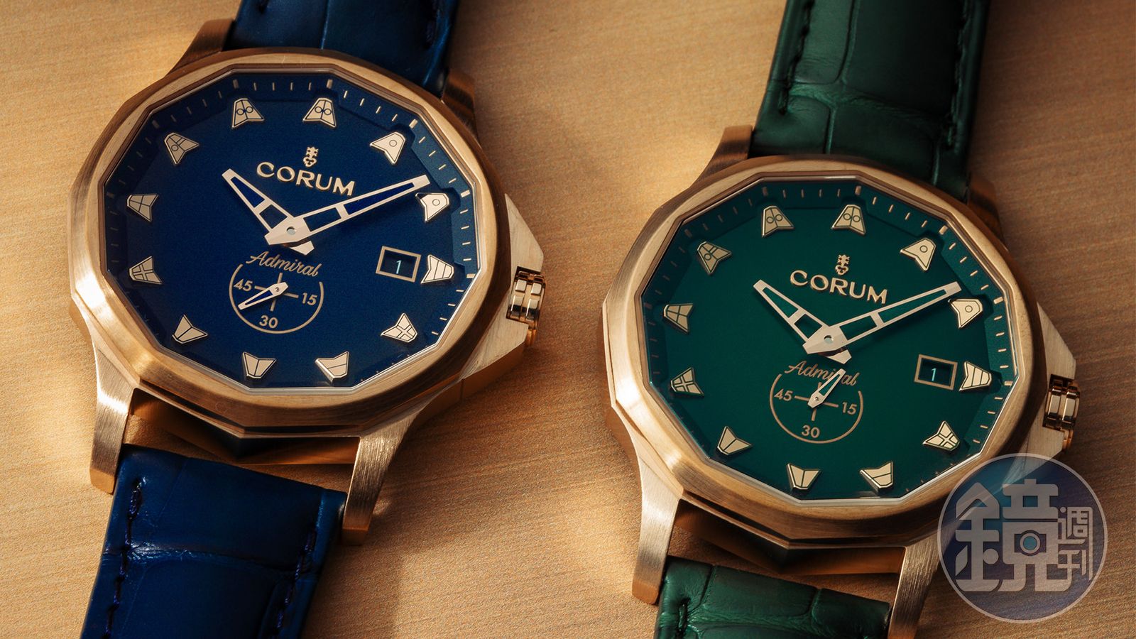 海軍上將是崑崙(CORUM)的招牌系列,誕生起源是因為品牌創辦人之子Jean-René Bannwart對帆船賽的熱愛,長期贊助英國帆船俱樂部(RORC)的海軍上將盃帆船賽,因此才在品牌創立五年之後的1960年推出這個系列。今年是海軍上將的60週年,不過去年開始就品牌就陸續有一些動作,推出鏤空陀飛輪、全黑款、還有藍綠面的青銅錶等系列錶款,單色的海事旗時標也是從去年開始出現。