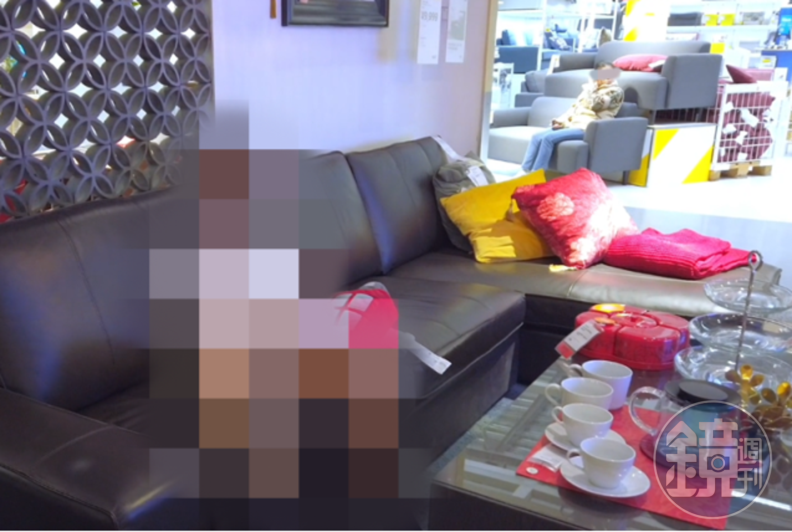 影片長達16分鐘,一名網紅身穿白色連身洋裝,坐在賣場展示的沙發上,裸露上半身,甚至做出自慰的動作,一旁不時有其他客人經過,還有小孩看見,但這名網紅與攝影師拍的如痴如醉,絲毫不顧忌旁人眼光。
