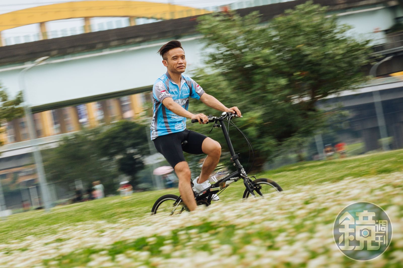 平日上午8點半,楊燁坐定在電腦前,先是查看韓國股市開盤狀況,等到9點台股一開盤,他緊盯技術線圖,一刻不鬆懈。下午收盤後,換上車衣,楊燁騎著單車從桃園龜山前往林口,透過運動釋放壓力。