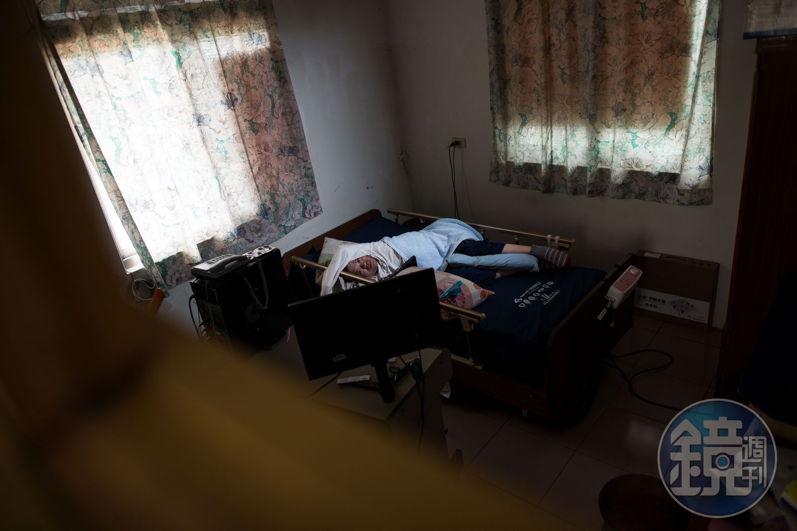 最讓溫金盛愧疚憂心的是,家快被他拖垮了。姊姊嫁人了,有自己的家要照顧,近幾年就靠父親種橘子跟溫金盛哥哥的薪水,請外籍看護照顧他。但是,去年橘子價格崩盤,家中經濟吃緊。溫金盛的父親74歲了,身上很多慢性病。這天外籍看護正在廚房忙著做飯,談起老闆忍不住落淚。她說溫金盛的父親最近住院,根本沒人到醫院照顧他,因為她得留在家裡照顧溫金盛。
