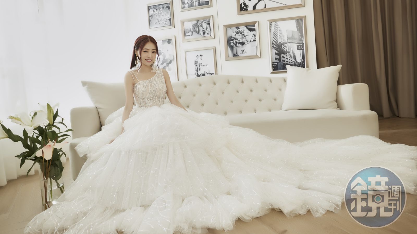 倆夫妻一眼就愛上林莉老師設計的高訂天使白紗-Ariel 亞列爾。戲劇性澎湃層疊抽皺大蓬紗裙以不對稱斜肩剪裁,以全手工縫製的華麗珍珠與爪鑽,讓丫頭第一次試穿即驚呼是自己的命定白紗。使用頂級布料,讓禮服華麗卻輕盈,要價30萬的天使白紗,也讓丫頭驚呼應該是人生迄今穿過最貴的衣服。
