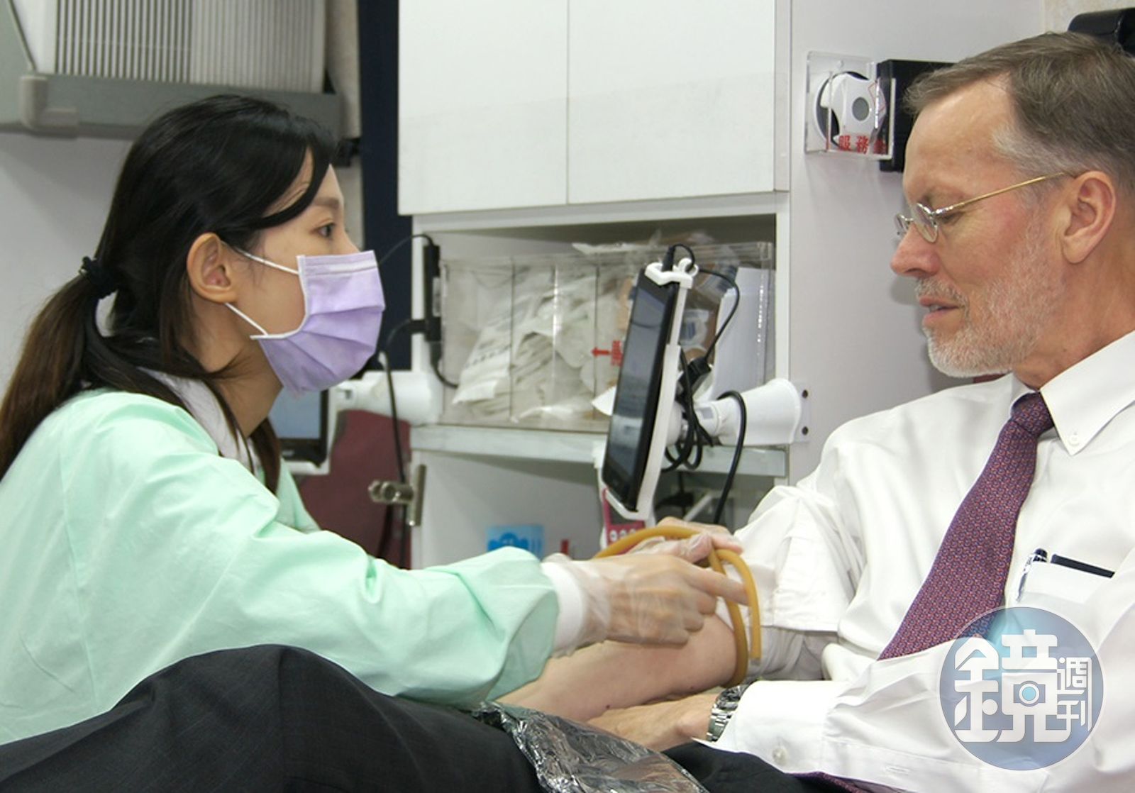 美國在台協會處長酈英傑挽袖響應捐血。(翻攝自美國在台協會AIT臉書)發布時間:2020.05.15 11:01 臺北時間