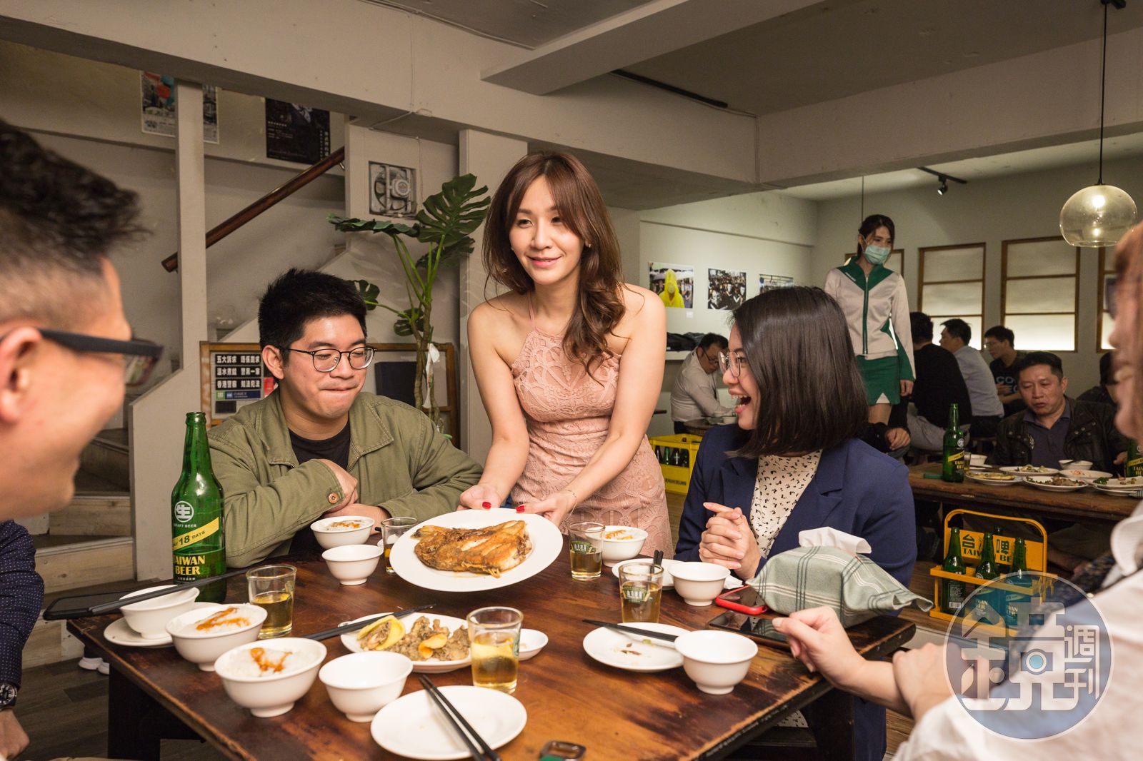 走進店裡面,一名穿著粉色削肩洋裝、打扮亮麗的年輕女子穿梭其中招呼客人。她是楊怡欣,從母姓的她今年35歲,是阿才的店第三任掌門人。有男客人趁她送菜時想要交換聯絡方式:「原來妳沒印名片啊?」楊怡欣笑答:「有事情找我,可以打來店裡啊!」簡單的一句話給碰了個軟釘子。