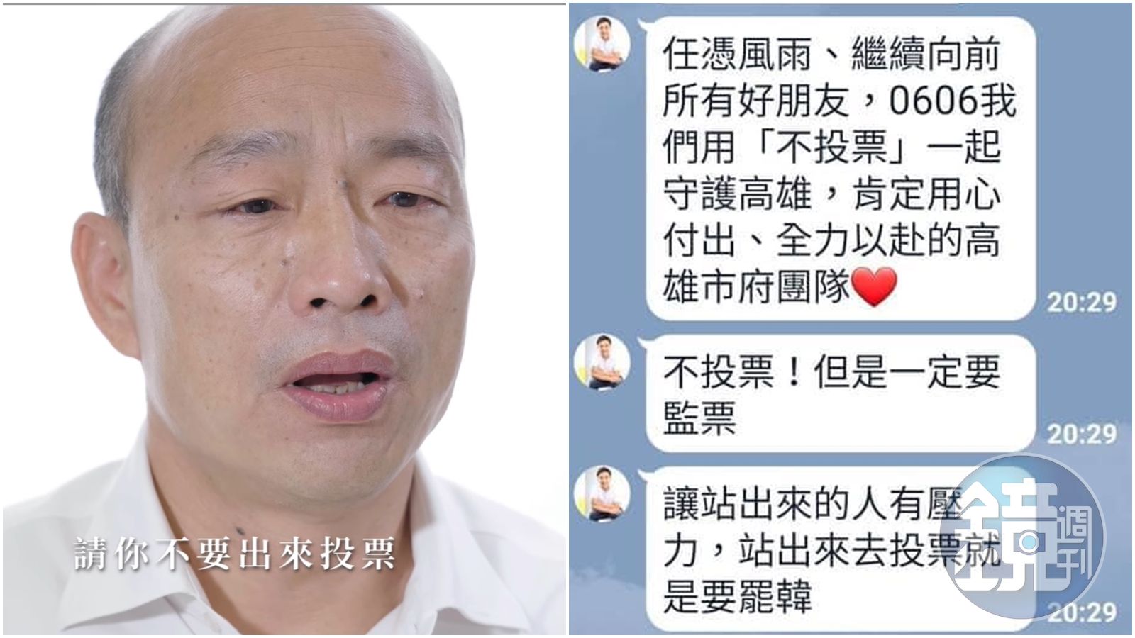 民進黨議員陳致中昨(17日)曝光曹桓榮LINE訊息截圖,對話中曹強調要「讓站出來的人有壓力,站出去投票就是要罷韓」,陳致中批評此舉違反行政中立,以寒蟬效應來讓民眾不趕出門投票;而時代力量議員黃捷則直言「那我們也只有頂住市長的惡意,才能讓高雄換新。大家撐住!一起加油!」