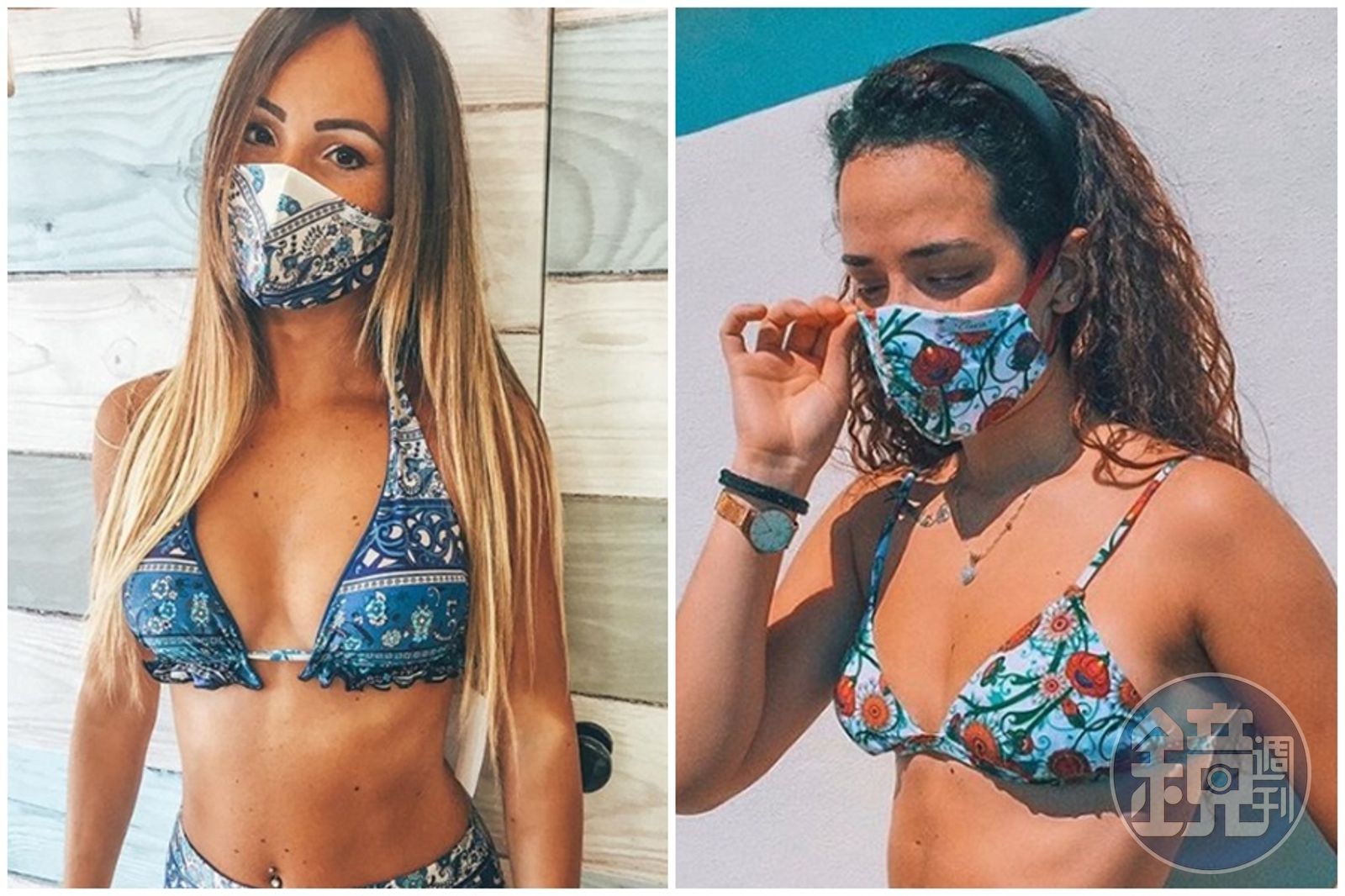 傳統的兩件式比基尼多加上一個口罩,三者都用同一組的布料製作,成了「防疫三件式」。(翻攝elexia_beachwear IG)隨著各國禁足令鬆綁,「trikinis」訂單也應接不暇。(翻攝elexia_beachwear IG)原本是疫情的受災戶,設計師蒂齊亞娜化危機為轉機,反而打造出令人耳目一新的設計。隨著氣溫升高,疫情逐漸趨緩,歐洲國家對民眾的外出的限制逐步放寬,蒂齊亞娜開心表示,接到來自各地的訂單已經越來越多。