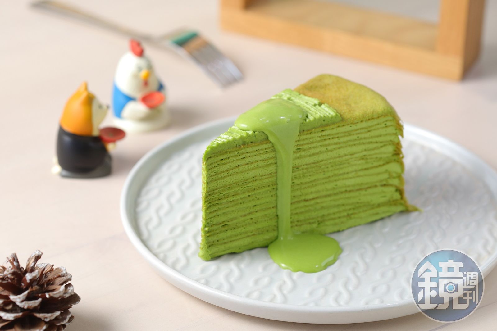 小店主打的是蛋香十足的千層蛋糕,餅皮層層堆疊,依季節推出5、6種口味,像是「小山園抹茶千層蛋糕」,使用小山園青嵐等級的抹茶,為了平衡茶中的苦澀味,特別加入法國白巧克力,入口時有著雅致抹茶味,餘韻回甘又不苦澀。有時也會用台灣好茶做成「紅玉紅茶千層」及「蜜香烏龍千層蛋糕」。