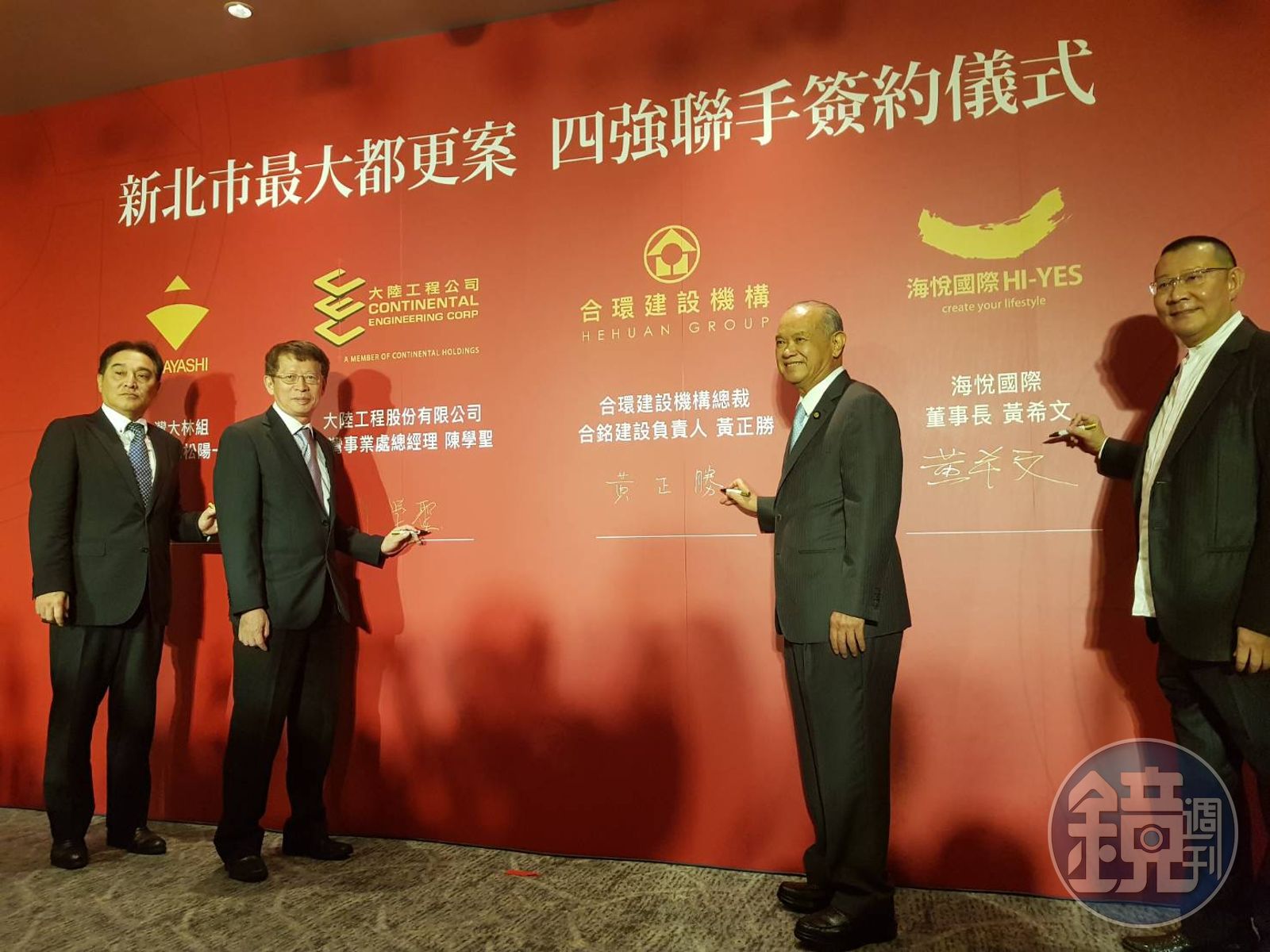 黃勝正創立的合環建設機構是新北市的老字號建商,從1970年創立至今,他每每出手都會創下新紀錄,譬如45年前,合環在板橋完成第一座電梯大樓、12年前完成新店第一宗都市更新建案,這一次,他找了知名營造廠「大陸工程」、「日商大林組」與台灣代銷龍頭「海悅國際」等豪華陣容,將興建2棟42層樓高的摩天地標建築。