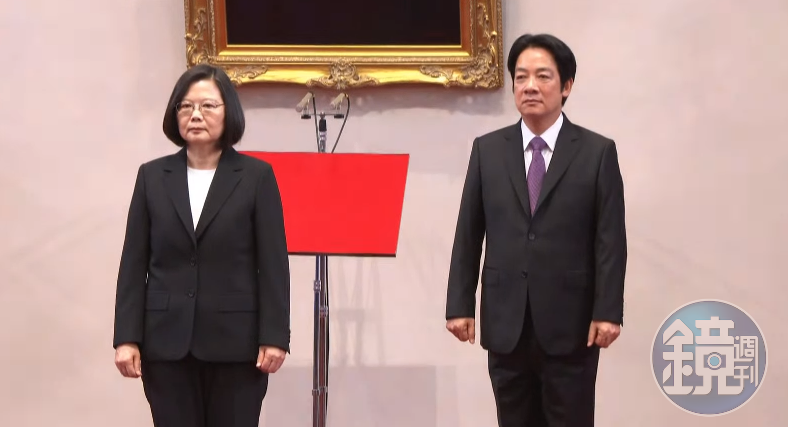 宣誓就職儀式唱國歌時,蔡英文、卸任副總統陳建仁都開口唱完,不過當畫面帶到賴清德時,他並沒有張嘴唱國歌,接著,眾人向國旗暨國父遺像三鞠躬。