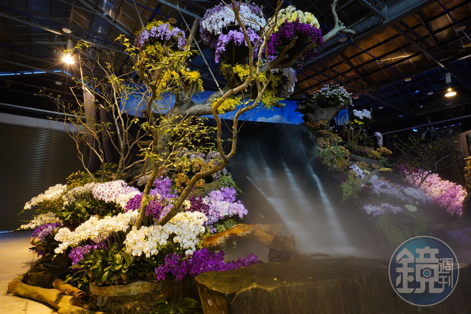 2020臺灣國際蘭展以「豐饒百年」為主題,共有四、五十家蘭農一同建構展場,工作人員更是自農曆年前,就陸續運進枯木等佈展素材,現場除了有氣勢磅礴的水圳澆灌,還將三合院古厝搬入會場,牆上滿布象徵嘉南平原豐收的對聯詩句。