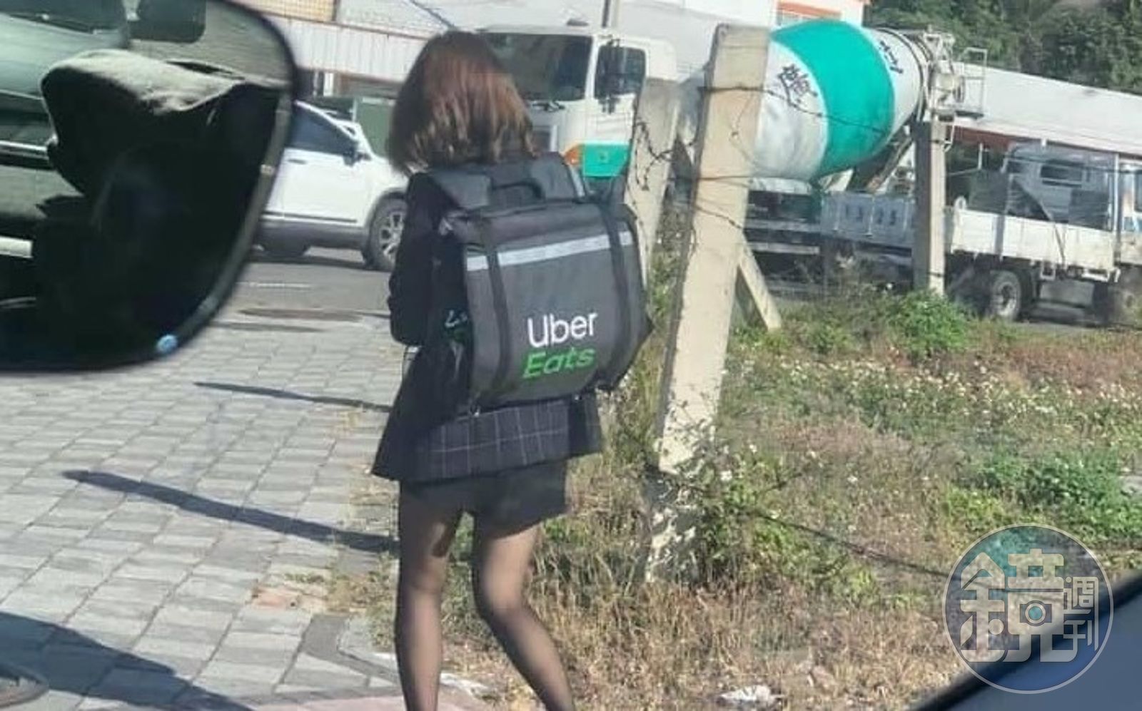 一位網友日前在「UberEATS台灣」臉書社團分享照片,只見照片的短髮妹,穿著西裝外套,下半身配著短裙、黑絲襪,揹著外送包準備送餐中,徒步送餐的畫面曝光,引起大票網友關注。