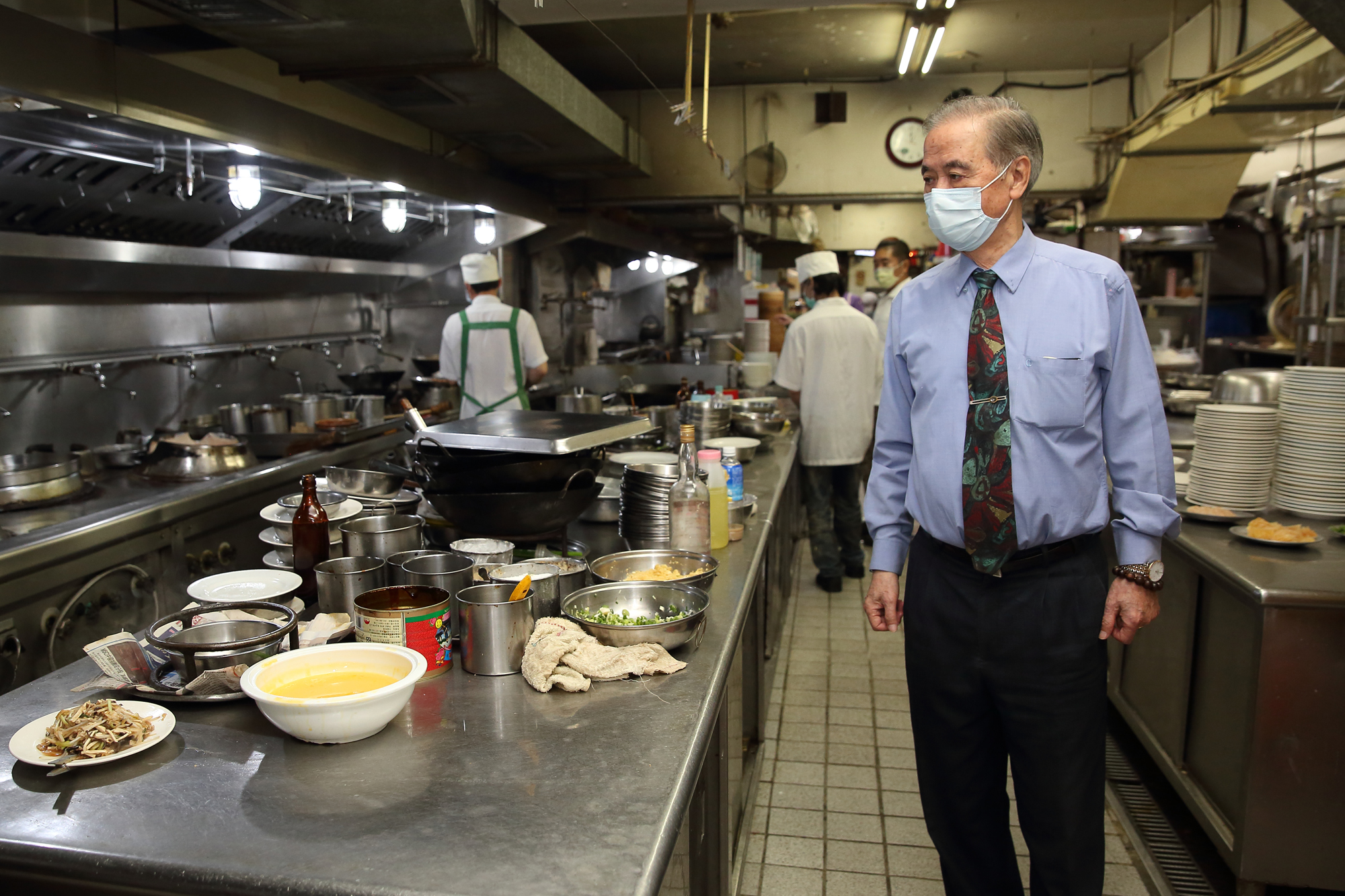1978年進入餐館時什麼都不會,連站在一旁都不及格,「我天生凶臉,咱們小姐端個盤子要放茶杯,從我面前經過都會抖2下,父親把我叫到他房裡說『你不要把部隊那一套帶到這裡來。』」從打雜學起,燒開水、管倉庫,哪裡缺人哪裡去,「我手上這老人斑,是以前煎蘿蔔糕油濺上來,年紀大了色素沉澱。」陳虎符現在雖然已經81歲,人手不足時還是會進廚房幫忙。
