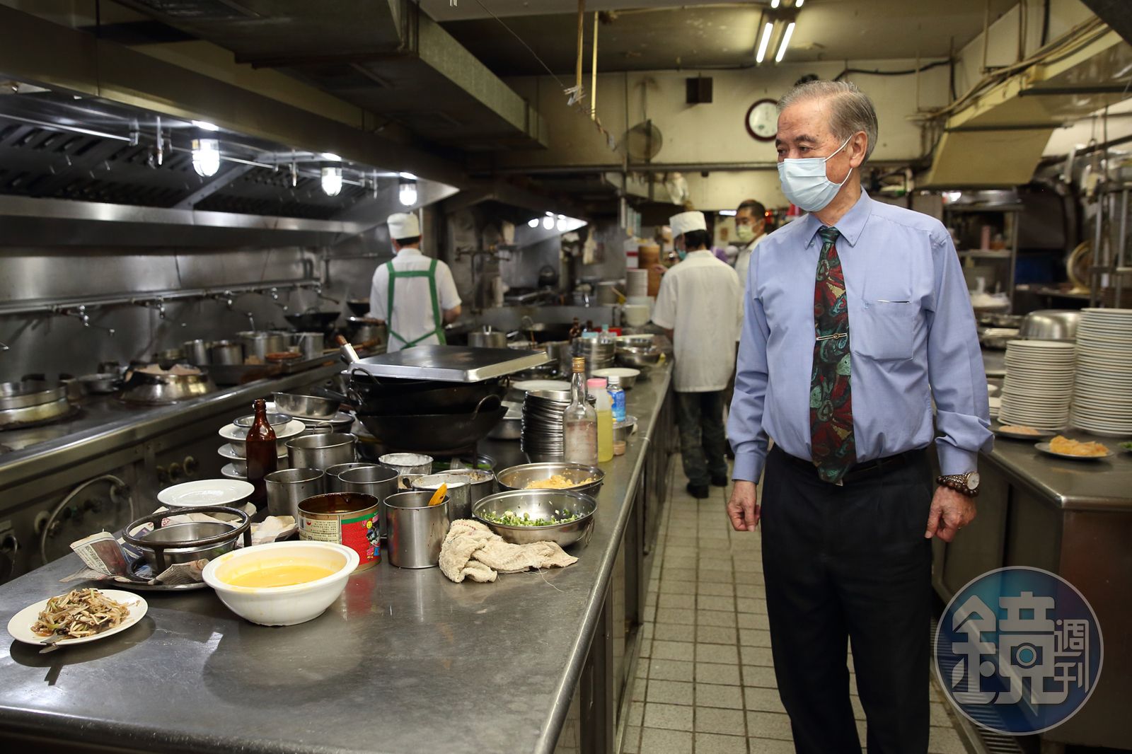 弟弟陳虎門大約10年前才加入團隊,人稱三哥、虎哥的他和父親一樣,是退役情報員。「我沒管事,比較像是公關,很多老朋友、部屬上門就跟他們聊聊天。」陳虎門的工作或許還包括招攬員工,鎮守前台處理訂位事宜的高瘦男子、在後場掌控進度的大廚都曾是為國家賣命的特務,透過陳虎門引介換了戰場。當年隨陳萬策一起打拚的老兵大多已經凋零,現在不少幹部是來自軍情局、國安局退役的軍官,也有一些是往生情報員的家屬,最多時占5成,因此天廚還被戲稱「情報窩」。