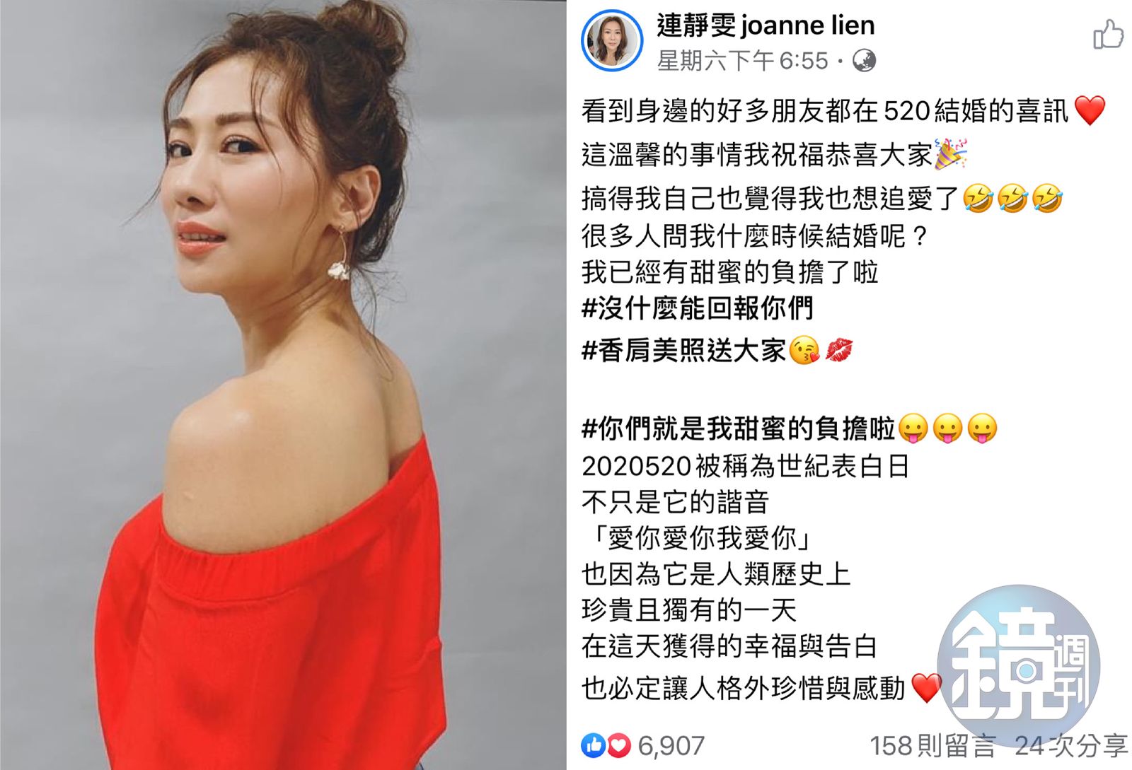 連靜雯「520」當天見友人紛傳喜訊讓她動心想追愛。(翻攝自連靜雯臉書)發布時間:2020.05.25 13:27 臺北時間
