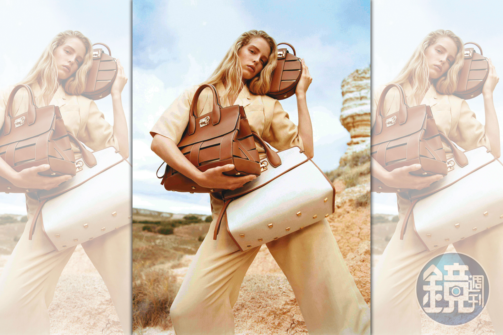 包包想要吸睛,就要有些特殊的設計,例如Salvatore Ferragamo STUDIO包款的鳥籠款式,就是很有小巧思的作品。於2018年推出的方正形狀STUDIO包在本季以鈴鼓為靈感發想,推出圓形包款,其中的鳥籠款式運用撞色縫線搭配棉質面料內襯,透過外部的挖空設計製造不同的層次感,肩帶則同樣加入棉質面料設計,這個夏天讓妳散發出奢華的休閒look。