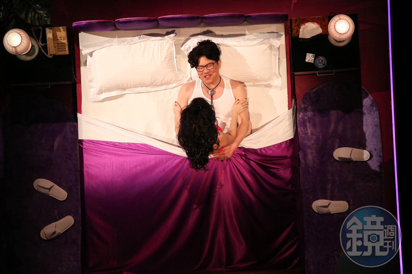 而Albee范乙霏這次挑戰3個不同的小三角色,與曾國城有大量對手戲,曾國城稱讚Albee將3個不同類型的小三詮釋得很好,「讓人覺得不同男人都會暈船,會想要認識的女生」。Albee則說她不怕演小三被討厭,只擔心自己演不好。談起她與曾國城的「床戲」,由於是站立式演戲,兩人連「滾床單」都很費力,Albee說每次演出前要先用「大法師」的姿勢拉筋,以防閃到腰。