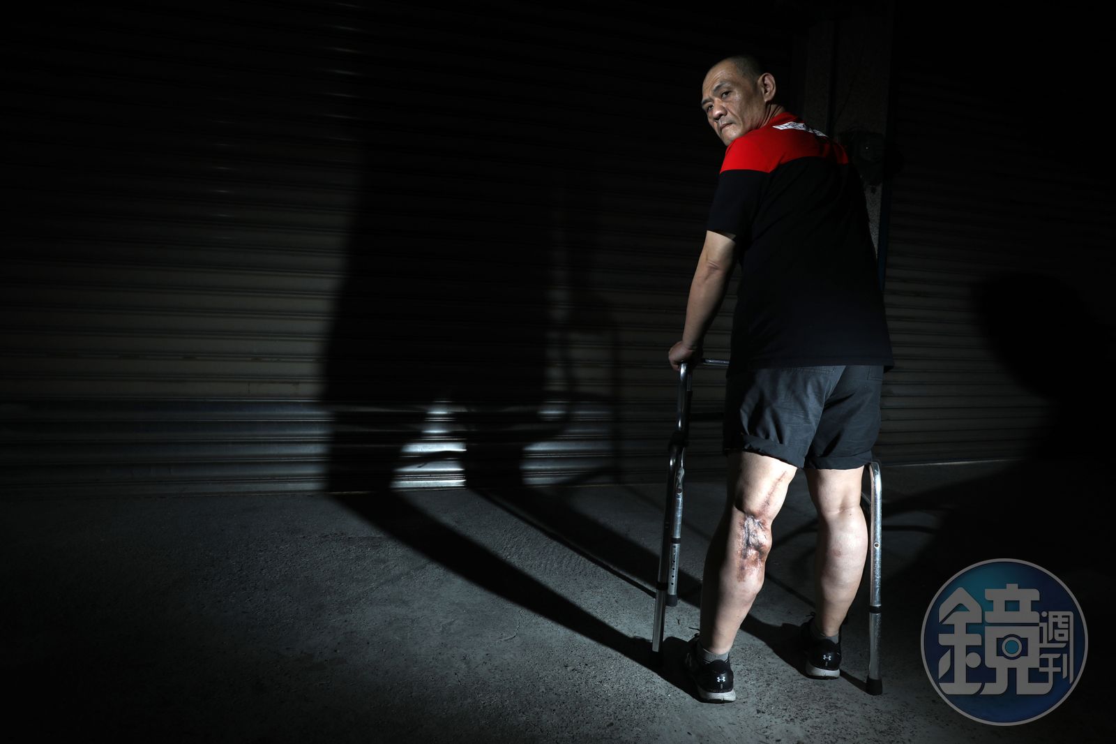 第5次,醫生只好在他的腰椎裝鐵架,「鐵架裝了身體容易僵硬,而且裝了就要裝一輩子,可是沒辦法了。」經過漫長復健,如今他終於能慢慢走路,但從此無法再提重物。