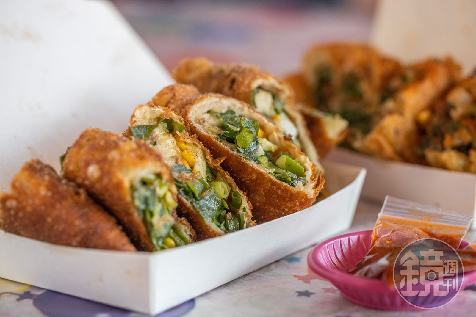 阿惠指定餡料要選用彌陀區的青蔥,風味比宜蘭三星蔥粗獷辛嗆,由於天氣一熱青蔥容易轉苦味,所以她加入玉米、炒菜脯,增添甜味及甘潤。