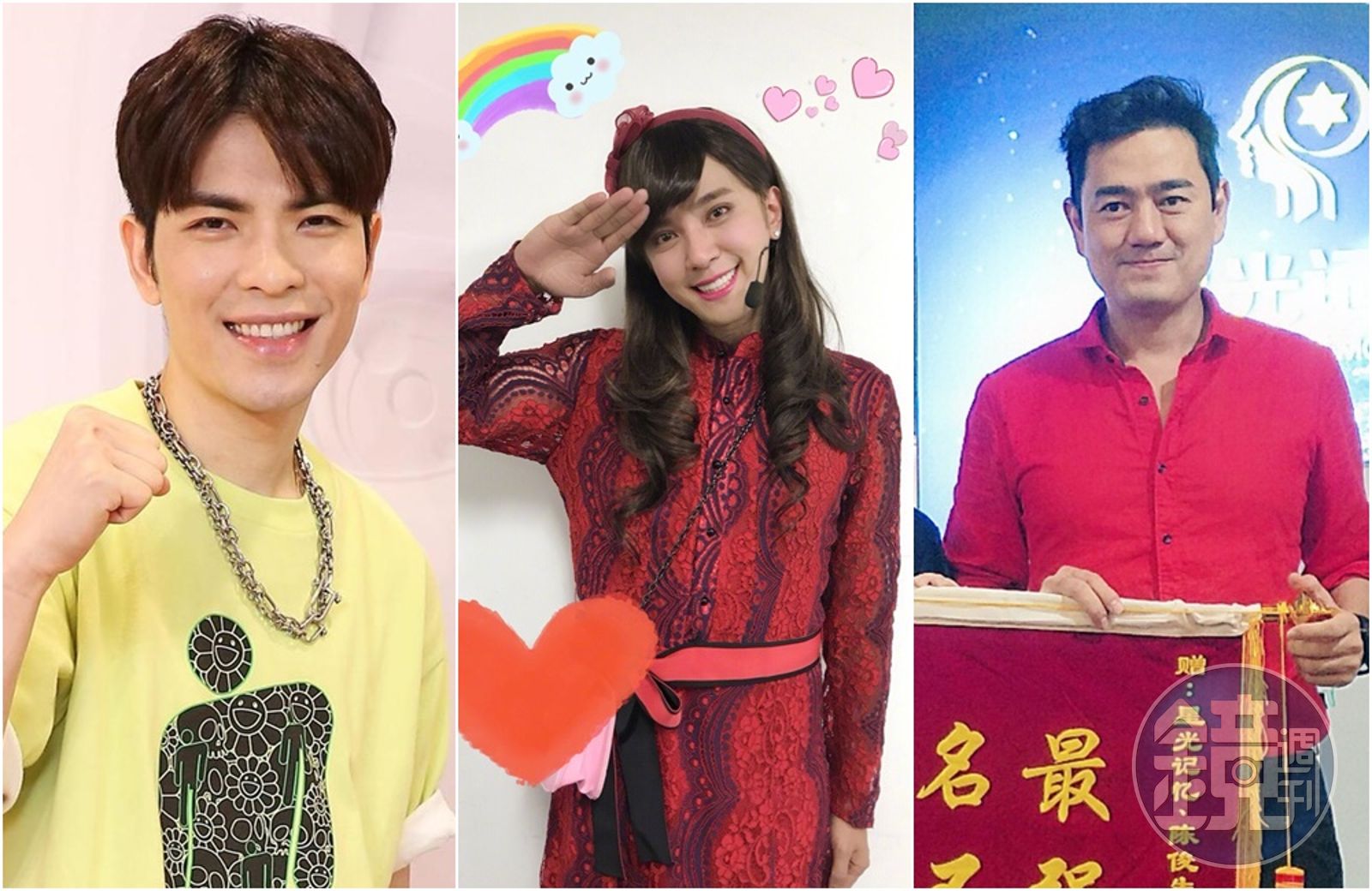 羅志祥自稱「有點娘」,還會在家穿一件式裙子。女裝扮相頗受好評,他透露因為是獨子,小時候媽媽會為他綁辮子、塗口紅,打扮得像女生。 陳俊生曾戴假髮、裝假奶、男扮女裝在京華城逛街,保全認為可疑報警。他事後開記者會澄清是為角色進行揣摩,但說詞不被外界接受。 蕭敬騰自稱小時候很愛漂亮,還會偷穿姐姐的衣服和媽媽的化妝品打扮,但他強調會挑比較中性的衣服穿。