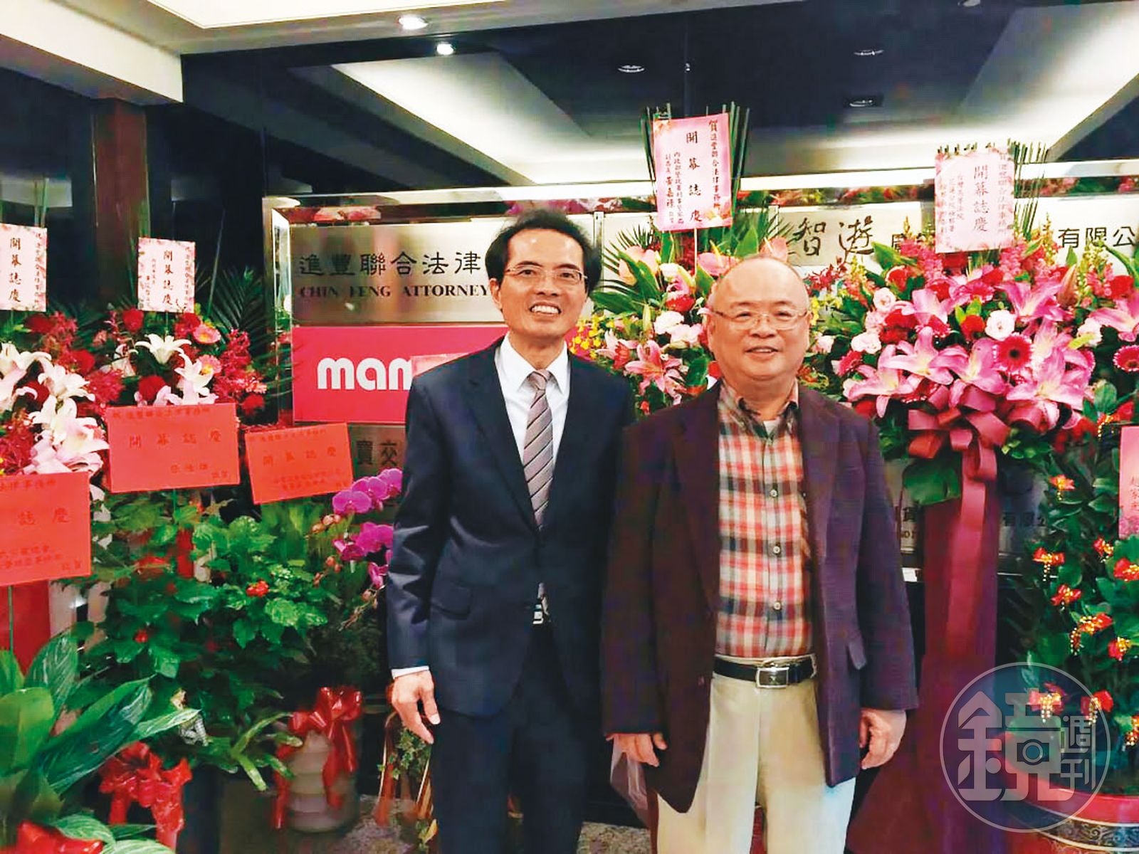 張進豐(左)卸下檢察官公職後轉任律師,事務所開幕時有不少政商名流到場,時任檢察總長顏大和(右)也出席祝賀。(翻攝張進豐律師事務所臉書)發布時間:2020.06.03 05:58 臺北時間
