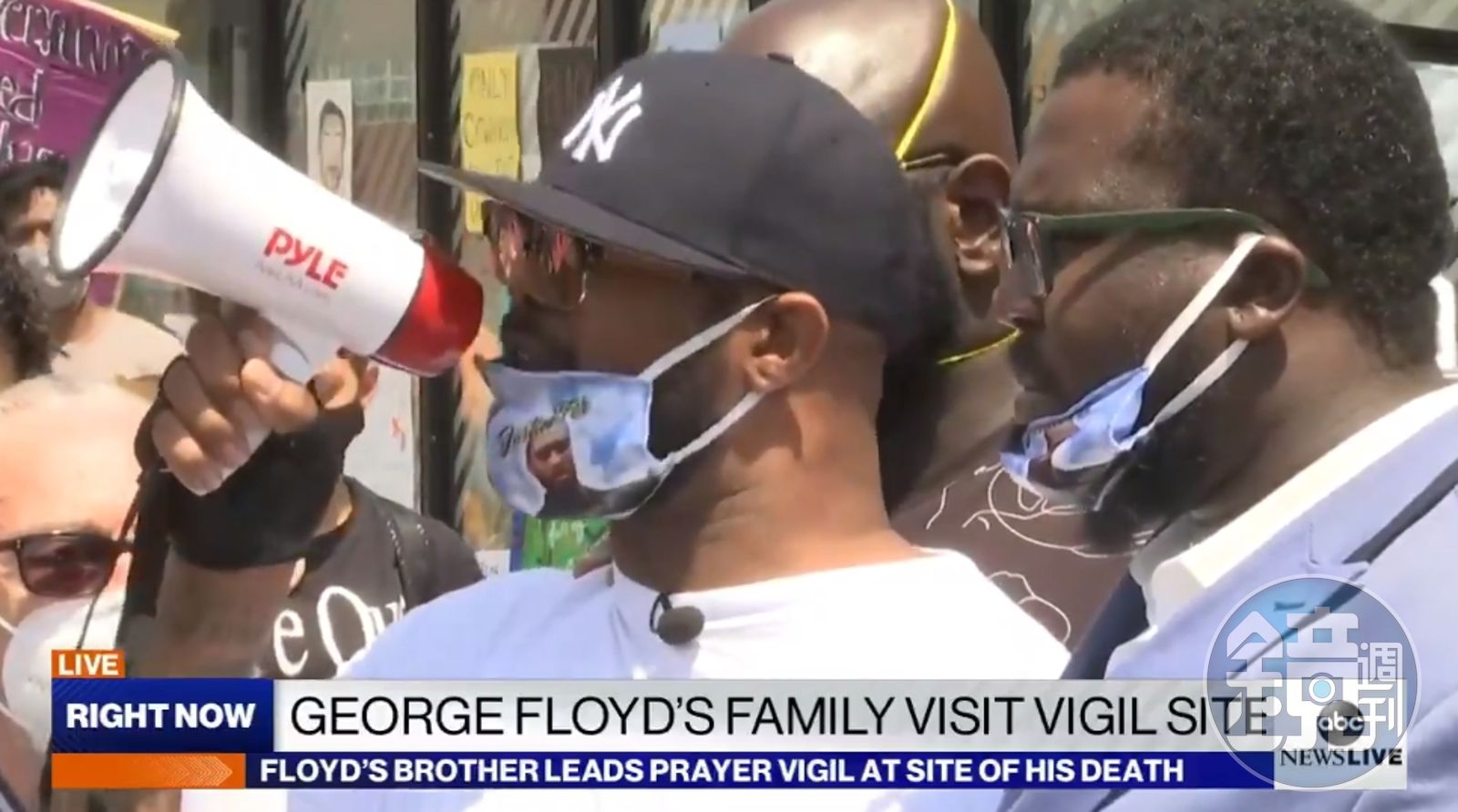 喬治弗洛伊德的弟弟泰倫斯佛洛伊德(Terrence Floyd),1日前往哥哥遭殺害的地點,站在整個事件的導火線起點,泰倫斯呼籲失控的大眾冷靜下來,管好自己,「如果我沒有在這裡暴走、在那裡亂炸東西,搗亂我的社區,那你們在幹嘛?你們什麼都沒幫上!這些並不能讓我哥哥起死回生。」