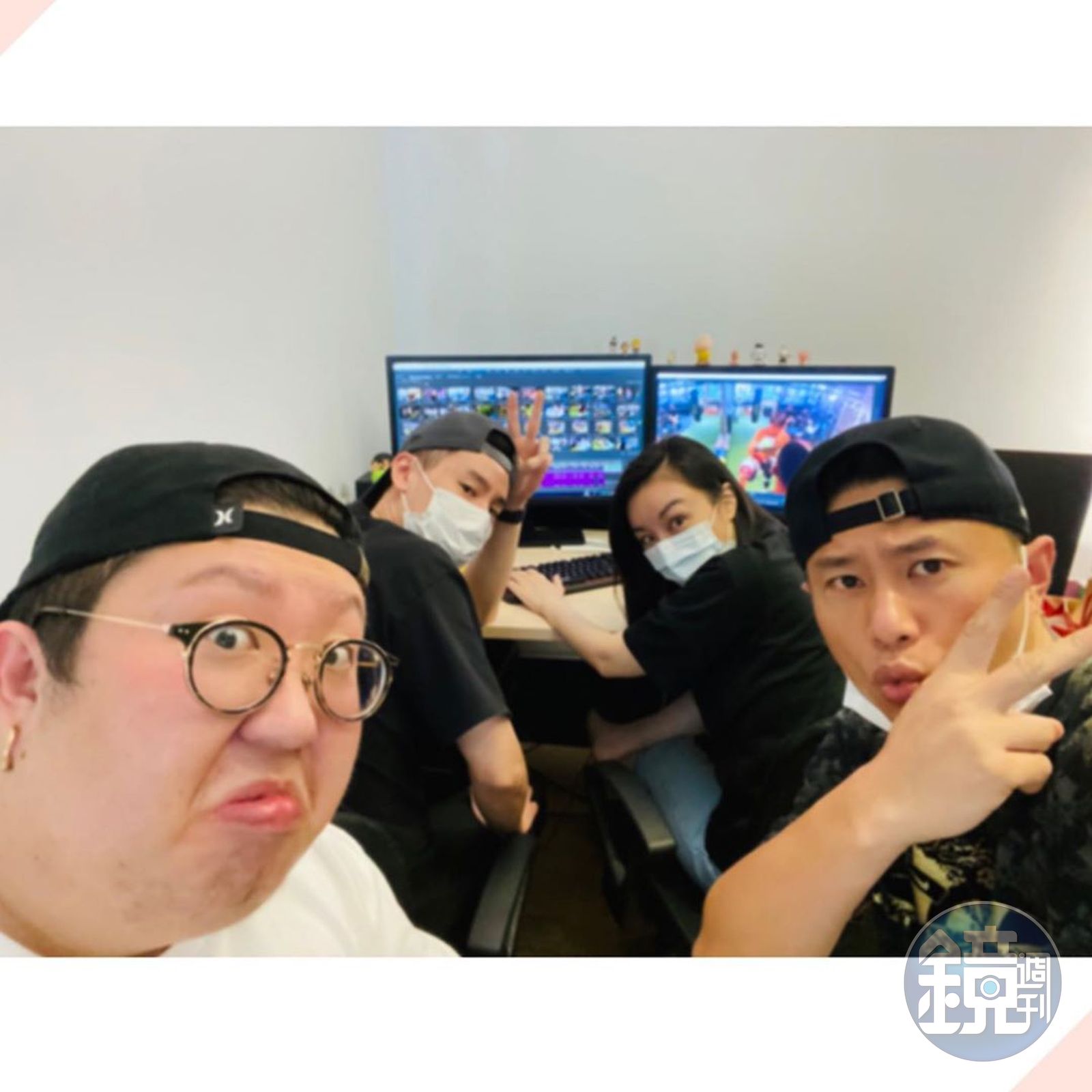 男同事於5月25日在IG上發文與照片,小刀為了澄清而轉發。(翻攝自小刀IG)不過小刀隨即在IG上發文,並PO出一張男同事於5月25日的文章截圖,照片中除了他和男同事外,旁邊還有一個戴口罩的長髮妹,他寫道:「一切只為了我這個系列影片的製作~」,澄清女方只是工作上的夥伴,所謂的香閨也只是15坪大的工作室,無奈說:「還好胖胖有拍照發IG!」