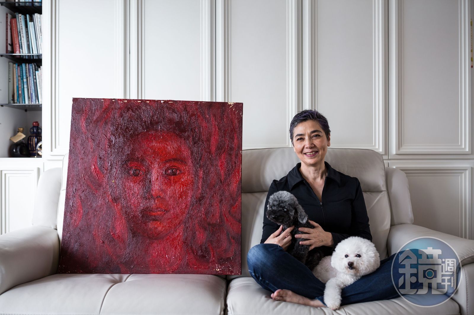賴佩霞自復興美工肄業,有繪畫底子, 後來又去印度學習靜心繪畫, 紅色自畫像代表她的熱情、有愛。