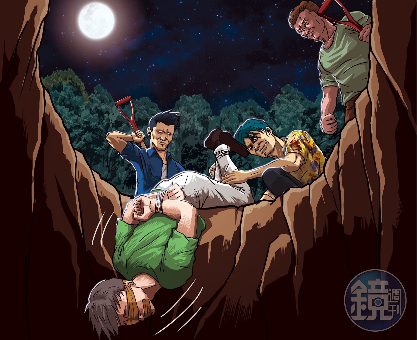 角頭陳祝賢夥同2名小弟擄走情敵吳東明,以鐵絲綑綁其手腳,用膠帶貼住眼睛、嘴巴,再採頭下腳上「倒栽蔥」方式將人活埋。發布時間:2020.06.08 05:58 臺北時間