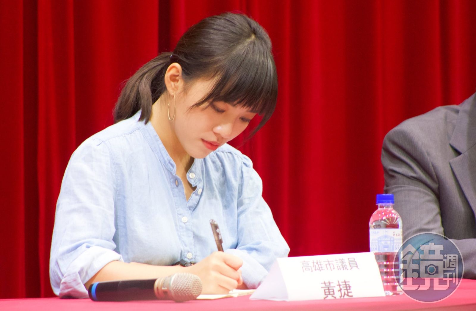 儘管黃捷今天身穿黑色長裙和暗色上衣,但吳秋麗認為議員跑行程,想擦大紅口紅可以理解,但來靈堂可戴個口罩,「沒人會知道妳擦個大紅口紅」,吳秋麗表示自己當下是悲從中來,才講了很直接的話。