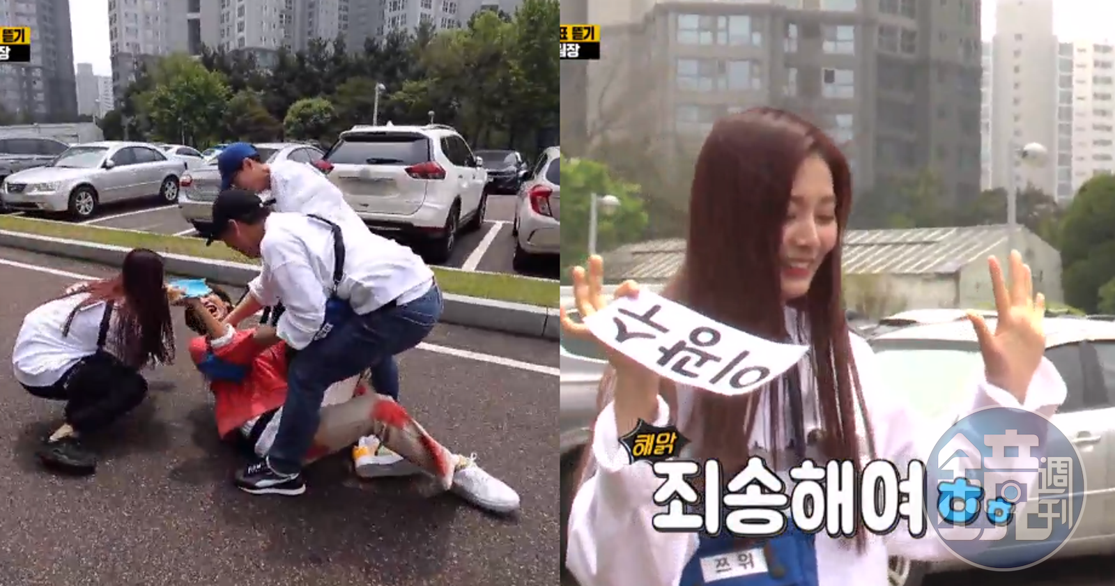 橘隊的李光洙在撕名牌戰開打後,不斷背叛同組成員,只求自己存活,雖逃亡成功成為橘隊隊長,但難逃被其他隊伍追殺的命運,他為求活口給白隊梁世燦1萬韓元(約280元台幣),此時白隊劉在錫也現身,李光洙只好再交出1萬,懇求兩人放過,沒想到他倆竟說「我們會守信不撕你名牌,但會叫(同隊的)子瑜來撕」,此時子瑜現身,立刻掌握狀況,劉在錫、梁世燦架住李光洙,周子瑜迅速撕下他的名牌,將橘隊最後生還者淘汰。《Running Man》最新一集已在愛奇藝台灣站、friDay影音上線。