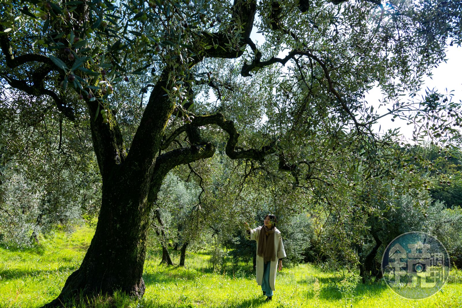一到義大利,大雨先打亂了參觀橄欖園的行程,「只要下雨,農人是不採收的。」義大利人搖頭。懷抱著一絲希望,終於在一個午後放晴的20分鐘,我們存著僥倖心態衝上達文西故居附近的橄欖園,洗滌過的天空特別澄淨,陽光灑落在橄欖翻飛的銀色樹葉上,葉面上水滴像燈泡般閃亮,在11月上旬,多數橄欖已蛻為帶紫紅的成熟,嘗一口,著實苦澀,但尾韻豐厚的油滑感湧上。