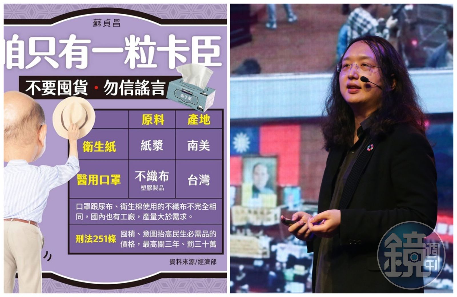 另外,該文也提到,除了當局借助科技力量,還包含民主所選出的官員為取得人民信任而做出的努力,例如行政院長蘇貞昌為了破除衛生紙之亂謠言,不惜拿屁股自嘲,說明衛生紙與口罩原料不相同,呼籲大家不要囤積,讓政府的幽默宣傳比錯誤信息傳播更快。