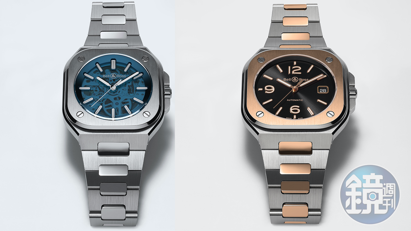 (左)BR 05 Skeleton Blue | 錶徑40mm、不鏽鋼材質、時間指示、自動上鏈機芯、防水100米、限量500只、建議售價NT$ 230,000(右)BR 05 Steel & Gold | 錶徑40mm、不鏽鋼及18K玫瑰金材質、時間及日期指示、自動上鏈機芯、防水100米、建議售價NT$ 360,000發布時間:2020.06.11 16:29 臺北時間
