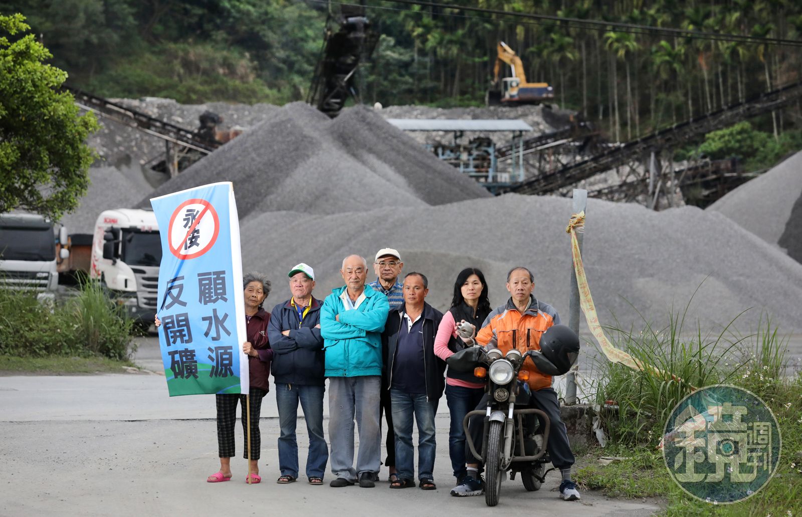 彼時盛況已不可考,早年曾在礦場工作的中華村民又多已過世,我們好不容易找到今年72歲的林明枝,他40年前自台北返鄉定居,當時曾在永侒礦場前身、由葉三元經營的礦場開推土機。如今林明枝從家門前望出去,還能看到當年他穿梭的那片樹林。林明枝的太太走到門前樹下加入我們,說後山挖礦的那幾年,山頭上總是一塊塊白白、空空的。1994年環評制度建立之前,台灣山林開發規則鬆散,業者只要有了礦權,買好地、開好路,就能上山開挖,不用顧及景觀或水土保持。