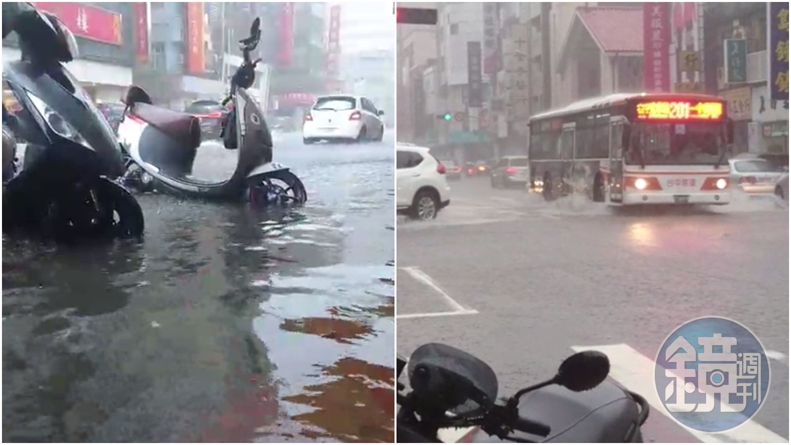 中央氣象局下午針對台中與南投發布豪雨特報,水利署針對中區、太平區、北區、西區、東區、南區等6處發布一級淹水警戒,其中台中市區時雨量高達近90毫米,宛如颱風般的強風豪雨讓台中人超有感。