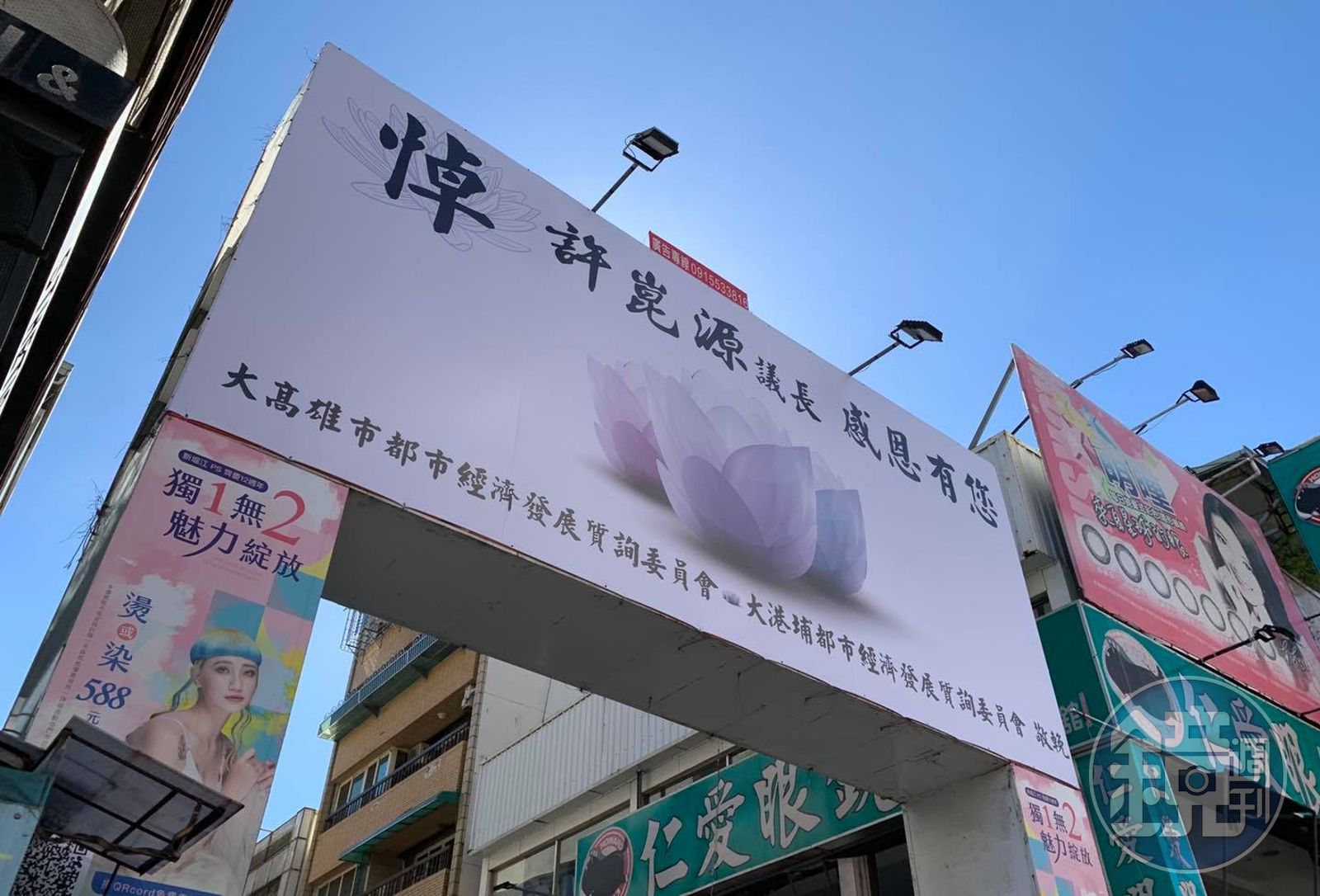 不只政治人物表達哀悼,最近高雄有幾個商圈也出現了悼念許崑源的看板,寫著「悼許崑源議長,感恩有您」,並放上蓮花的圖片,署名「大高雄市都市經濟發展質詢委員會、大港埔都市經濟發展質詢委員會敬輓」。