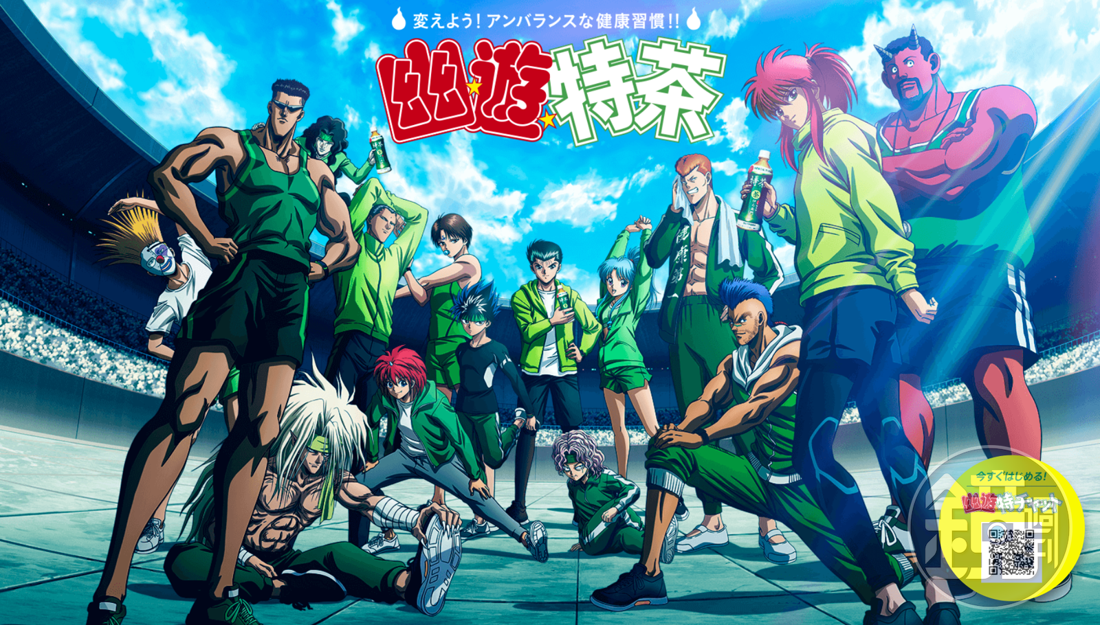 距離冨樫義博創作的經典漫畫《幽遊白書》完結已經 16 年,主角幽助、藏馬等角色的人氣不減,甚至接到日本三得利旗下的罐裝茶「伊右衛門 特茶」的合作邀約,推出名為「幽遊特茶(幽☆遊☆特チャット)」和「戶愚呂教教你 #現在的你缺乏的東西(戸愚呂が教える #今のおまえに足りないもの)」的 2 個特別企劃,6 月 15 日正式開跑。