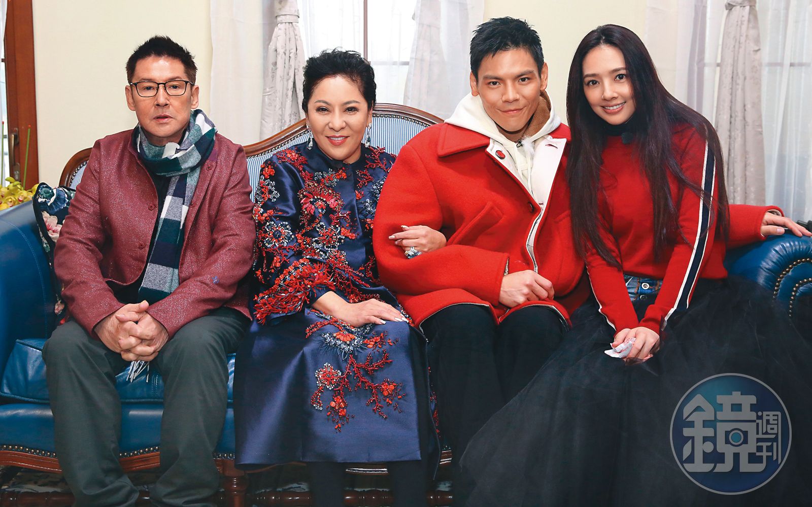 郭碧婷(右1)和向佐(右2)交往後,就聽從向太(左2)的指示,一起和爸爸(左1)上《最美的時光》節目抬高向佐知名度,向太也常上節目製造話題。發布時間:2020.06.17 05:58 臺北時間