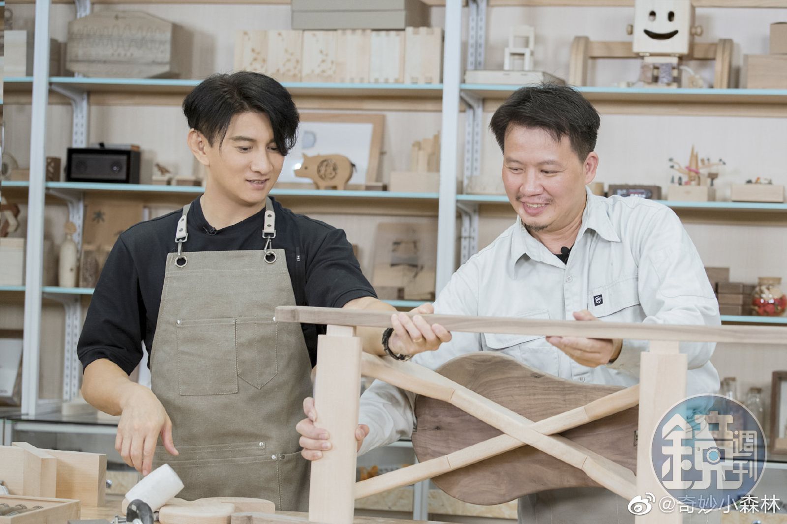 吳奇隆在大陸節目《奇妙小森林》學習為兒童製作木工。(奇妙小森林官博)發布時間:2020.06.16 15:33 臺北時間