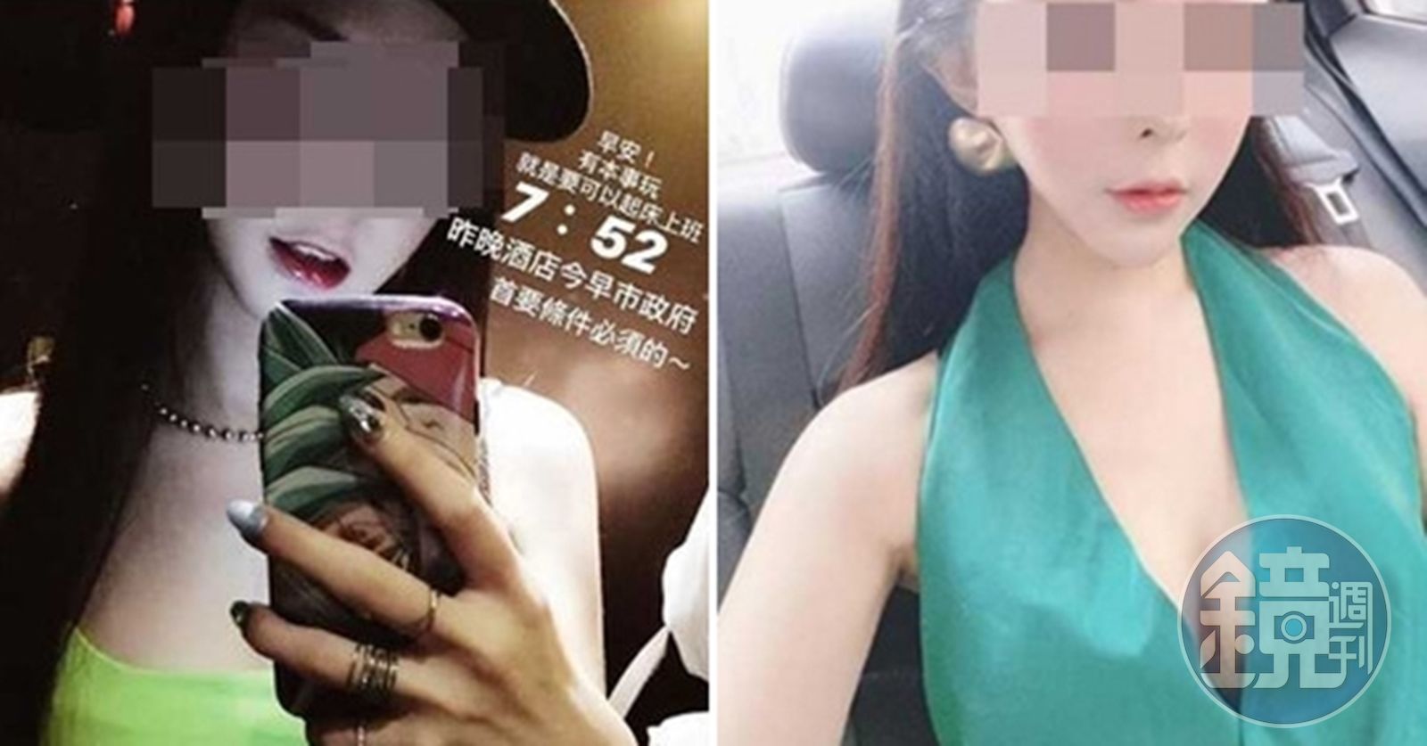 流傳的照片之一是該女戴上台中市府的深藍色鴨舌帽坐在車內自拍打卡,寫下「就是把市府也搞成這麼快樂嗎?這些酒醉的公務人員還要去見長官,處長議員好!」,另一張照片則是滿桌公文配上自己的美腿,寫下「啊!喝完酒,公文還是想處理完呀,超級荒謬的一天,喝酒打表格看過嗎?其實我也没看過…而且還在市政府」。