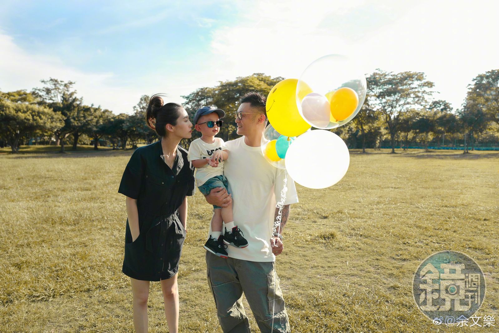 余文樂在微博曬出和老婆、兒子,一家人在草地上奔跑的照片,更特別在貼文中以「4個人」的古字,來宣布家中即將要有新成員,大兒子身上的衣服,更寫著「Best Brother」一家人充滿迎接新成員的喜氣,粉絲見到他的po文,也紛紛留言「恭喜」。