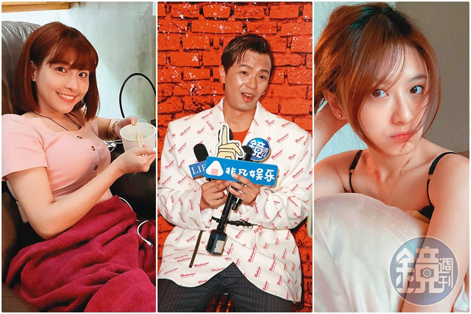 小鬼(中)向來對於戀情相當保護,比如妞妞(右圖,翻攝自妞妞臉書)都已跟他分手,他也依舊不認曾經交往。峮峮(左圖,翻攝峮峮臉書)是小鬼新歡,兩人因《綜藝玩很大》結緣。發布時間:2020.06.28 06:58 臺北時間