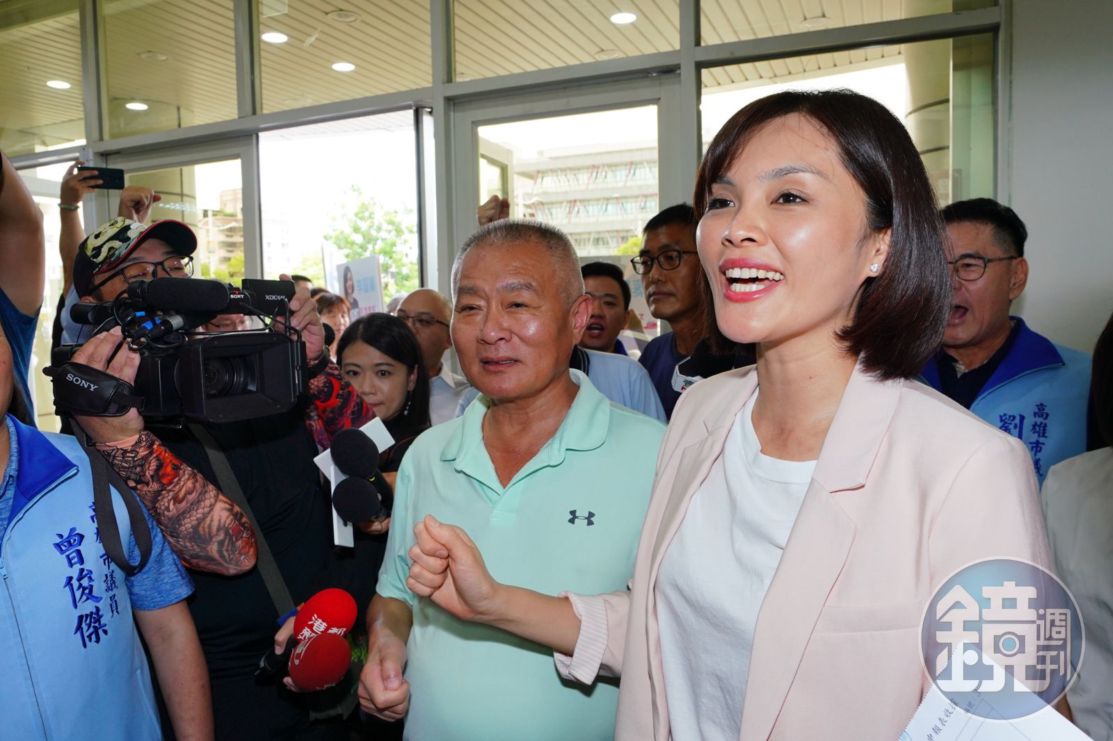 趕在登記截止的最後一天,李眉蓁今上午與父親李榮宗、國民黨文傳會主委王育敏、副祕書長謝龍介、議員陳麗娜、邱于軒、劉德林等人,一起到高雄市選委會完成參選登記,正式代表國民黨出征這次高雄市長補選,現場藍營支持者在一旁喊口號「李眉蓁,當選!」為她助陣。