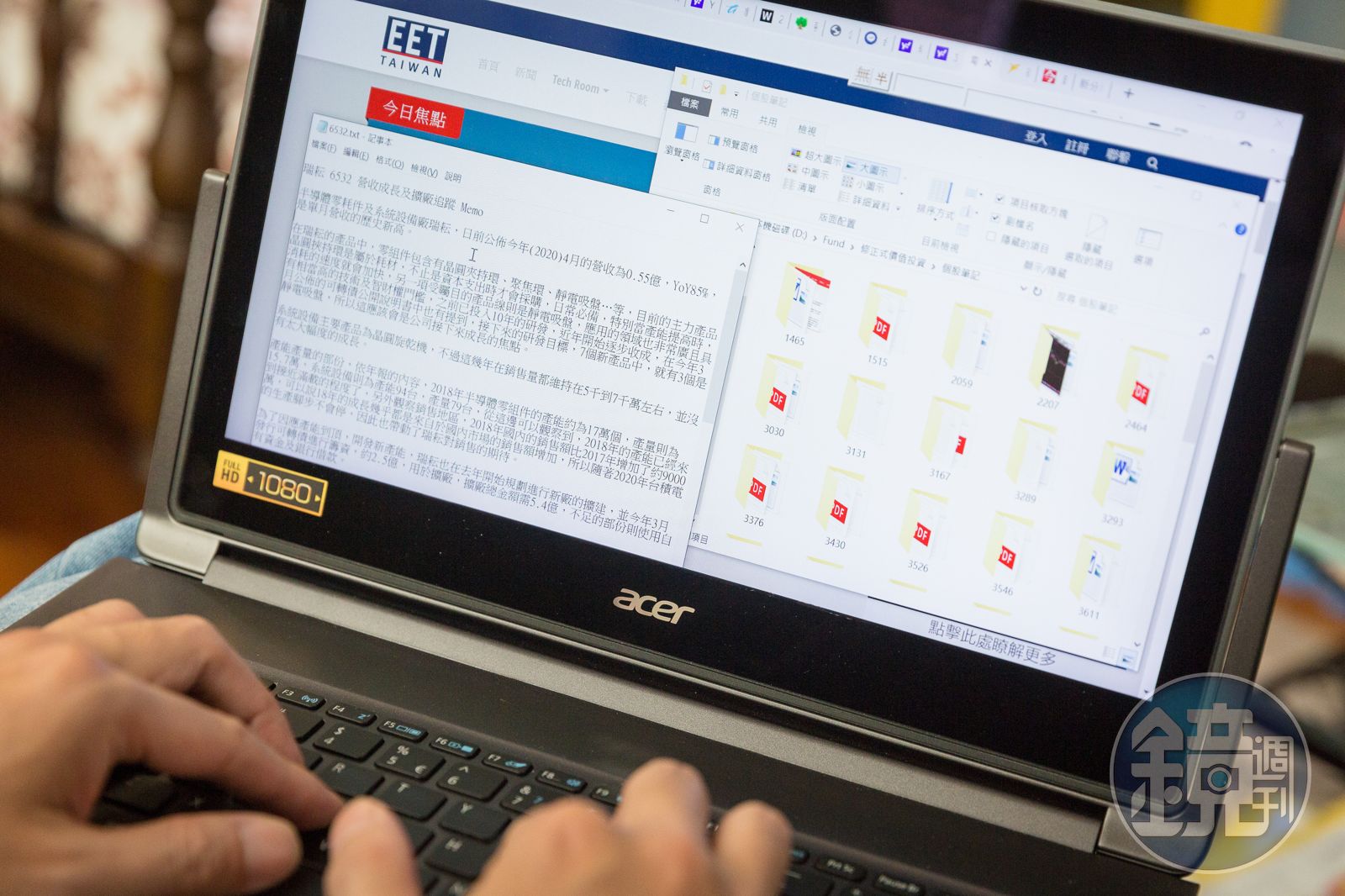 持續追蹤營收、剖析產業變化,是陳啟祥投資能夠致勝的關鍵。「在中國,不織布大廠南六產的水針不織布是製作濕紙巾的原料,由於疫情關係,中國濕紙巾需求大增,也讓南六的業績攀高。」陳啟祥坦言,在這波防疫概念股中,他曾經看好南六,「但現在情況不一樣,因為台灣也可以出口,自然也就影響到中國的不織布價格,目前進場投資風險相對高。」事實上,投資環境隨時都在改變,陳啟祥也呼籲投資人不要看到推薦就盲目進場,而是要真的去拆解公司營收。