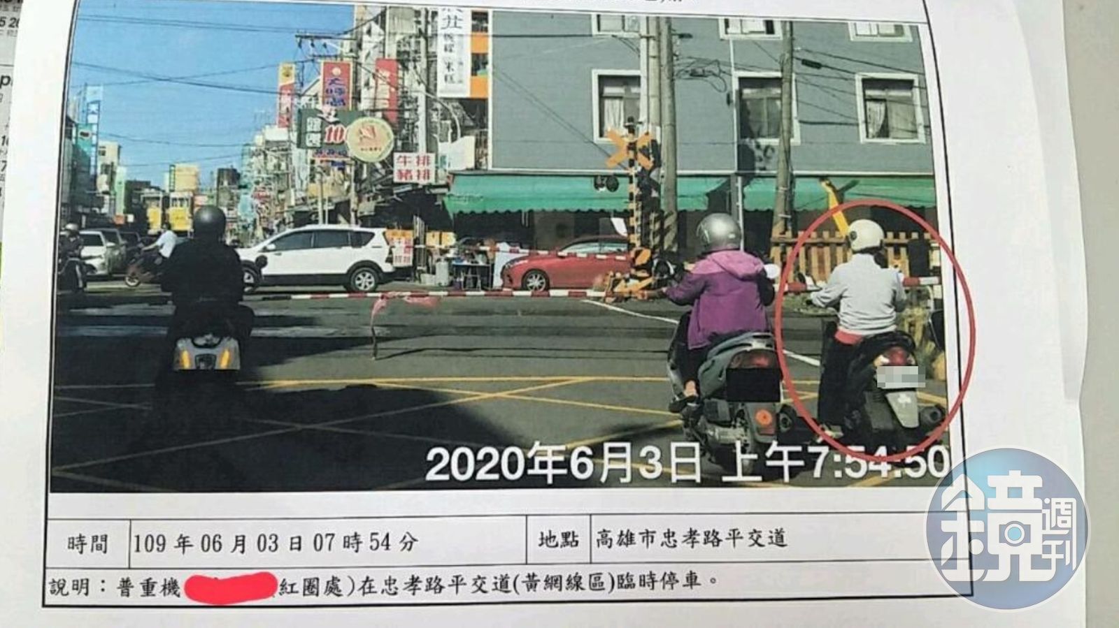 1名網友在臉書社團「爆料公社」貼出罰單,照片中可見有3台機車行經高雄市忠孝路平交道時,為等候火車通過而在鐵路平交道前的「黃網狀線區」上臨時停車。有民眾見狀檢舉,罰單金額竟高達15000元,讓該網友忍不住驚呼,「真的剛知道這樣會罰」,隨後又疑惑稱自己常看到這樣的景象。