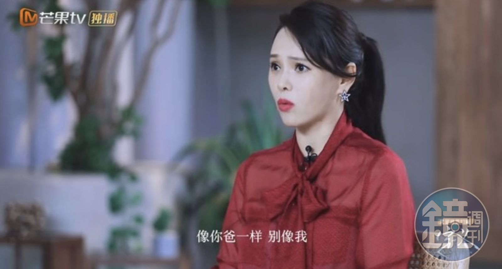 她也說小哈利非常有禮貌,且學習新事物的拚勁,其實是像前夫庾澄慶。她透露自己對小哈利其實比較放任,而爸爸庾澄慶比較嚴厲,她也在哈利大學時對哈利說「你要像你爸,別像我,你媽什麼都試過,但一事無成。」更大讚庾澄慶在當年的音樂圈,沒有別人像他一樣將西方音樂帶進中國市場。