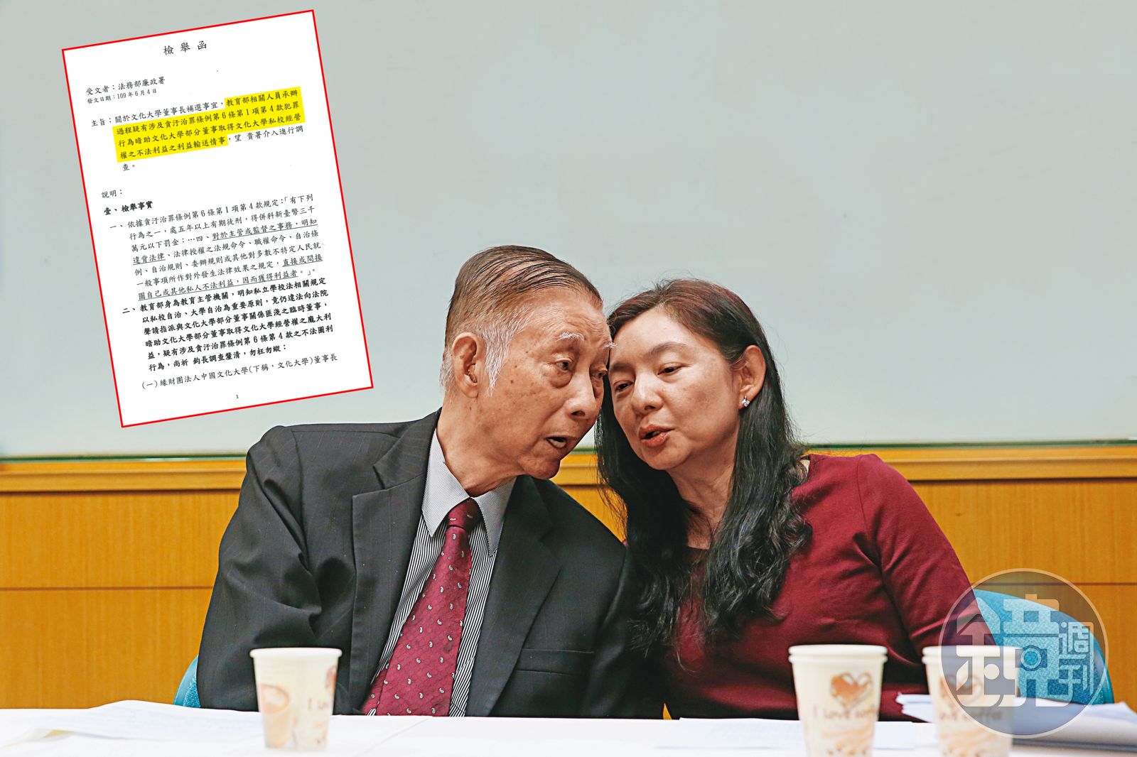 本刊調查,屬校友派的文大董事、文大校友總會理事長黃有良,與華岡人護校正義聯盟總召集人陳金龍,近日具名向調查局及廉政署檢舉,陳金龍接受本刊採訪直批,此案簡直是台大校長管中閔案翻版。調查局6月20日已約談相關人了解案情。